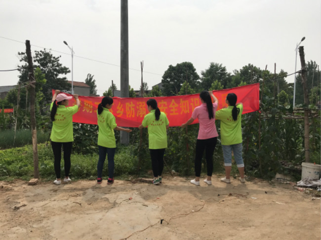 上午他们8点抵达王楼村, 挥起旗帜,扬起条幅,宣传活动紧张有序的进行。他们按组在村子里不同地区挨家挨户进行宣讲,并辅以一些课业辅导以及动员他们下午去村口观看关于防溺水安全教育的话剧表演,得到了村里人们的热烈欢迎。