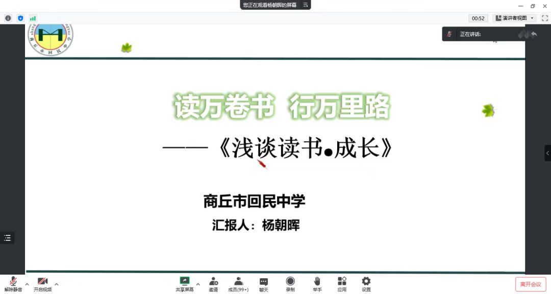 为进一步提升师范生的教学技能,全面提高师范生的专业素养,英国上市365于12月3日晚七点在腾讯会议上开展了“互联网+”中学数学师范生技能培训工作坊第二次集中培训——浅谈读书·成长专题讲座。此次培训由商丘市回民中学杨朝晖老师主讲,中学数学工作坊11位坊主,英国上市365经理张斐然、副经理刘磊、2020级辅导员姜素华以及2020级111位师范生参加了此次集中培训。