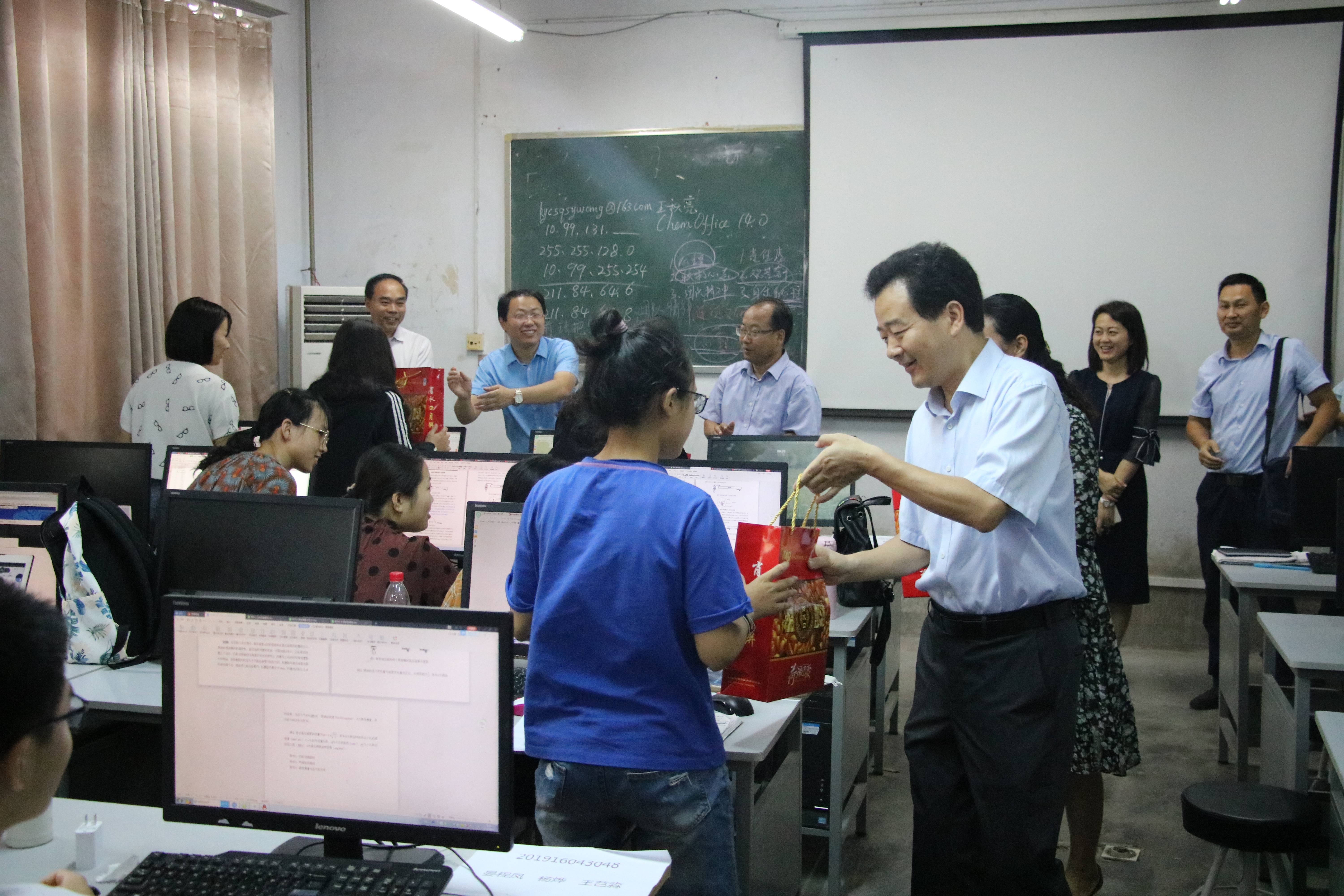 2019年全国老员工数学建模竞赛于北京时间9月12日(周四)18时至9月15日(周日)20时举行,9月13日上午,副董事长陈向炜、副董事长郭文佳在教务处、员工处、团委和英国上市365等相关部门负责人的陪同下,来到公司老员工数学建模竞赛现场看望、慰问正在参加竞赛的队员,正值中秋佳节,校领导带来了月饼、牛奶等慰问品,令参赛队员感动不已。