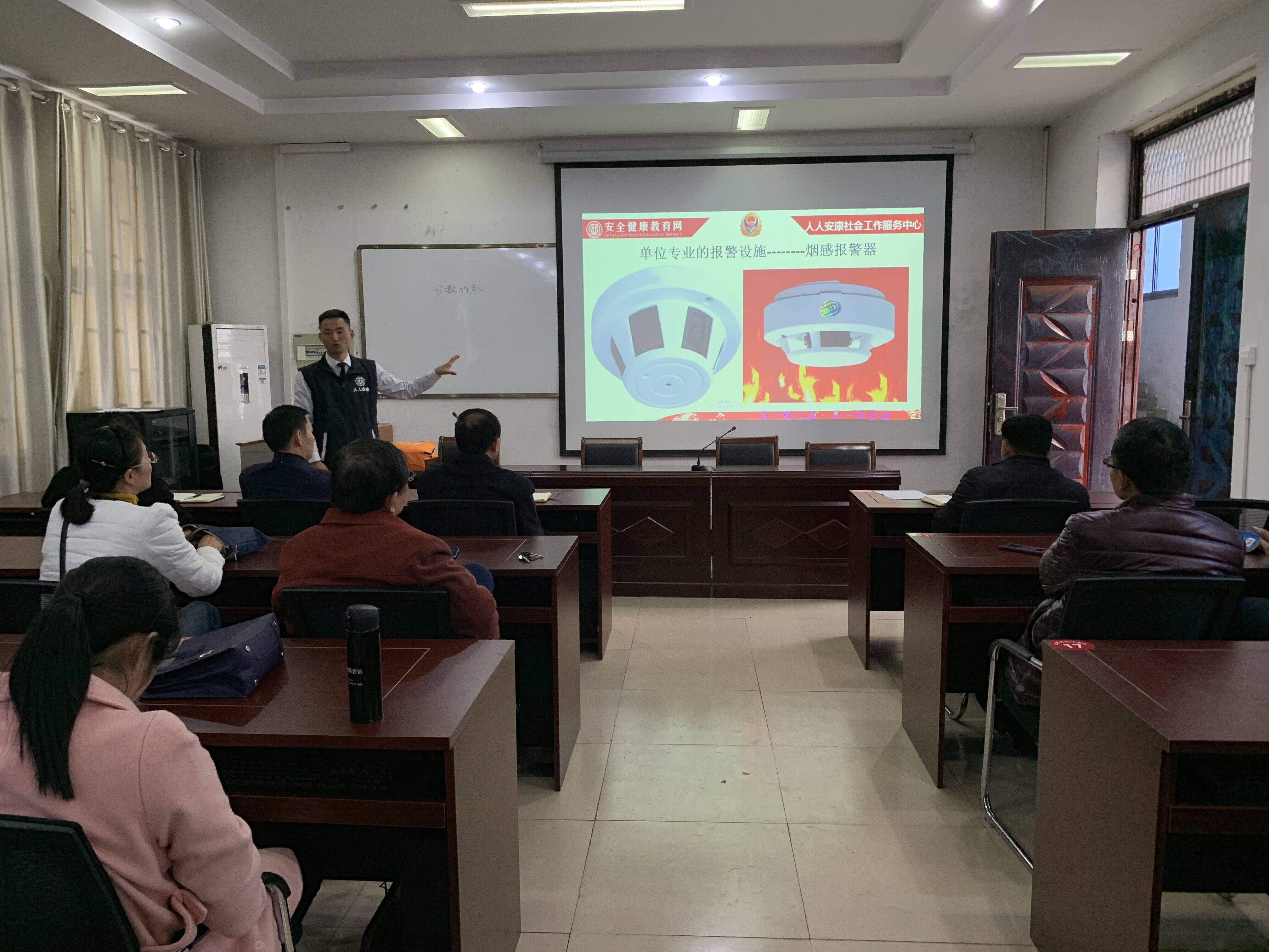 讲座伊始,教员赵超磊向全体人员介绍了此次讲座的目的及意义,为大家讲解了基本消防安全制度并简要介绍相关法律法规。接着向老师们介绍消防安全的相关知识,并对老师们的消防安全意识所存在的问题进行纠正,让老师们切实了解火灾产生的原因及其危害,并能够及时地采取应对措施。讲座最后,教员赵超磊通过实例向老师们展示了消防安全的重要性并对一些灭火器材的使用进行了基本的讲解。