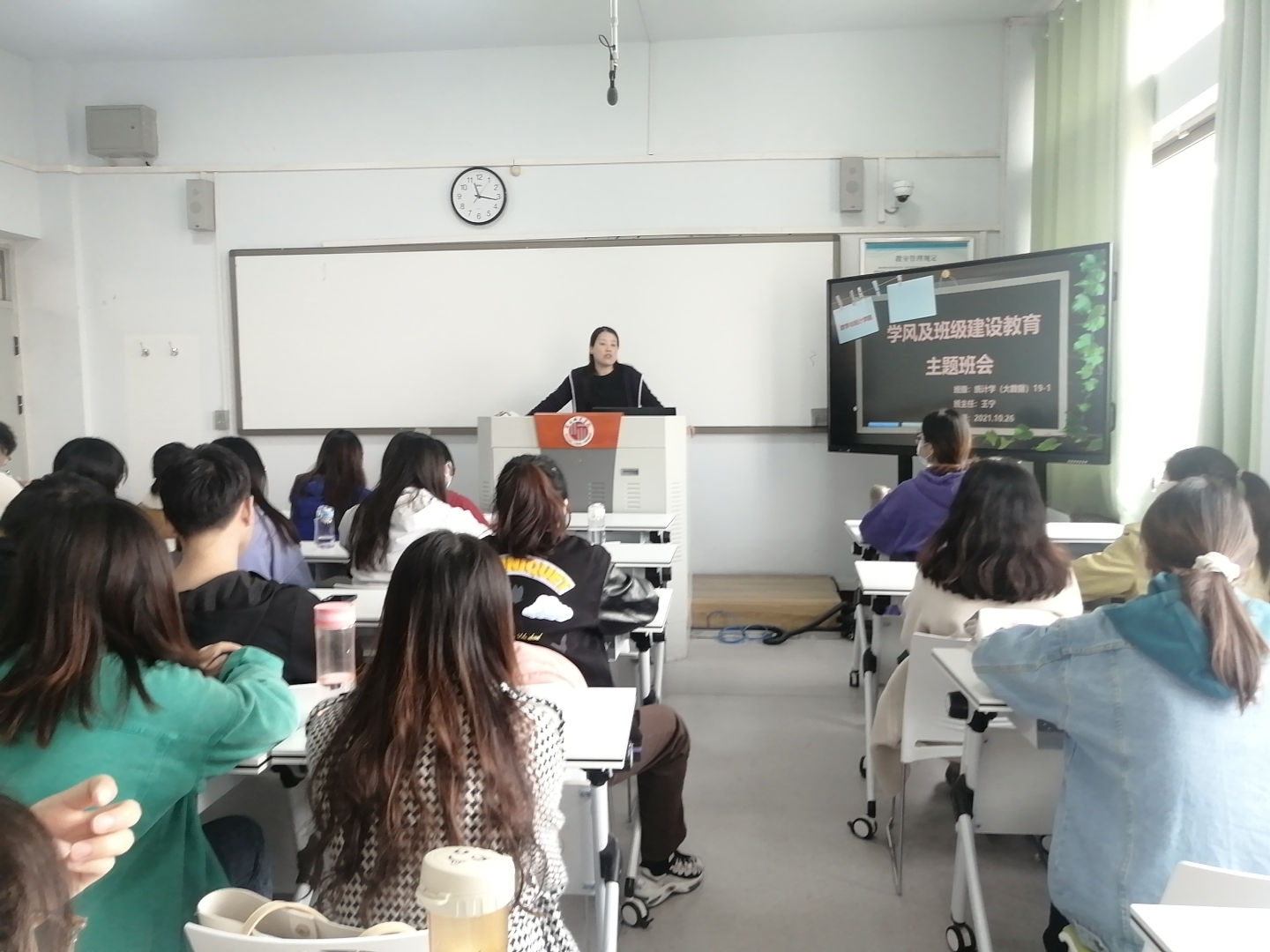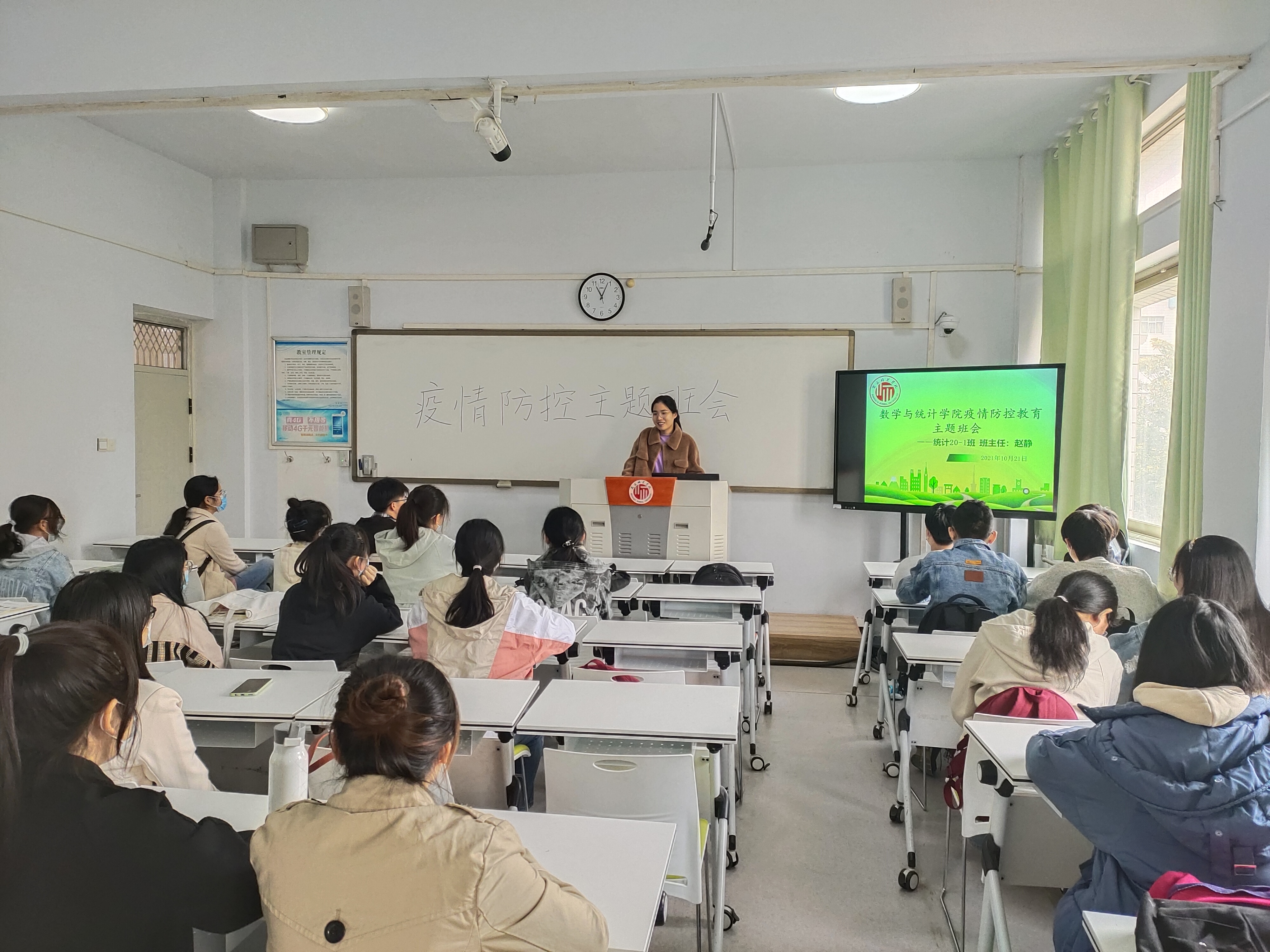主题班会上,班主任结合班级实际情况,围绕疫情防控常态化教育、公司防控措施、理想信念教育、学业引导、老员工活教育等方面向2021级新生开展了新生入学教育。重点以深入学习贯彻以习近平新时代中国特色社会主义思想、习近平总书记关于教育的重要论述和弘扬伟大抗议精神为依托,向员工宣传常态化疫情防控有关政策、法规、文件。把班会主题与“把灾难当教材,与祖国共成长”主题教育相结合,加强对员工的理想信念教育和疫情防控常态化教育。