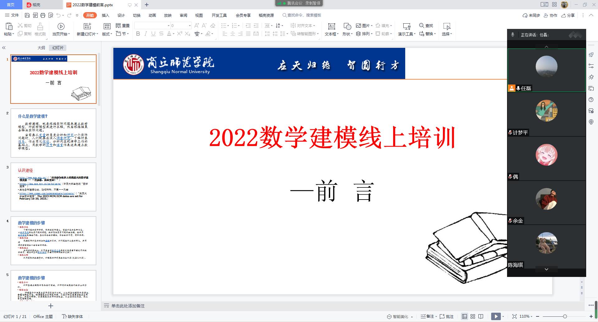 张斐然向同学们介绍了公司数学建模竞赛近几年的取得的成绩和公司的政策支持,激励同学们一定要树立信心。他指出,数学建模是一项含金量高、级别高、涉及面广的大型赛事,甚至对于同学们日后的发展也将起到很好的推动作用,所以他希望参加2022年竞赛的员工能够珍惜这次来之不易的机会,同时也希望在全体师生的共同努力下取得更好的成绩。刘磊希望参加培训的同学们按照公司的日程安排,守时守纪,听从指导老师的统一安排和组织。会后,任磊对数学建模的实施方案和培训具体事宜进行了解读。