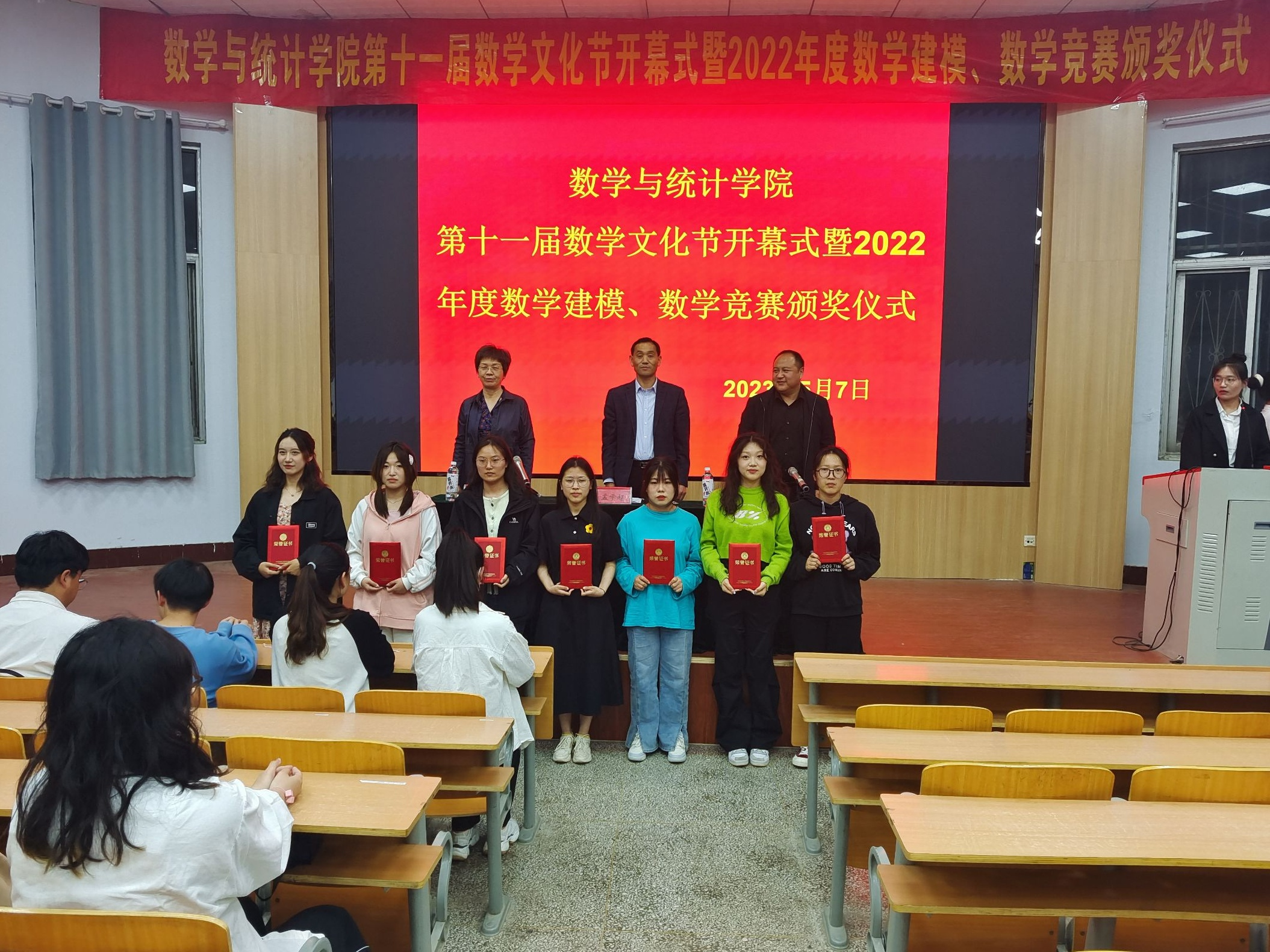 第十一届数学文化节开幕式暨2022年度数学建模、数学竞赛颁奖仪式的成功举办,有助于呼吁同学们一起感受数学之美,品味数学魅力,相信校园的学习氛围将更加浓郁,涌现出更多热爱数学的同学;也相信同学们能高扬智慧的风帆,让思想自由翱翔,飞扬青春的旋律,谱写动人的篇章!