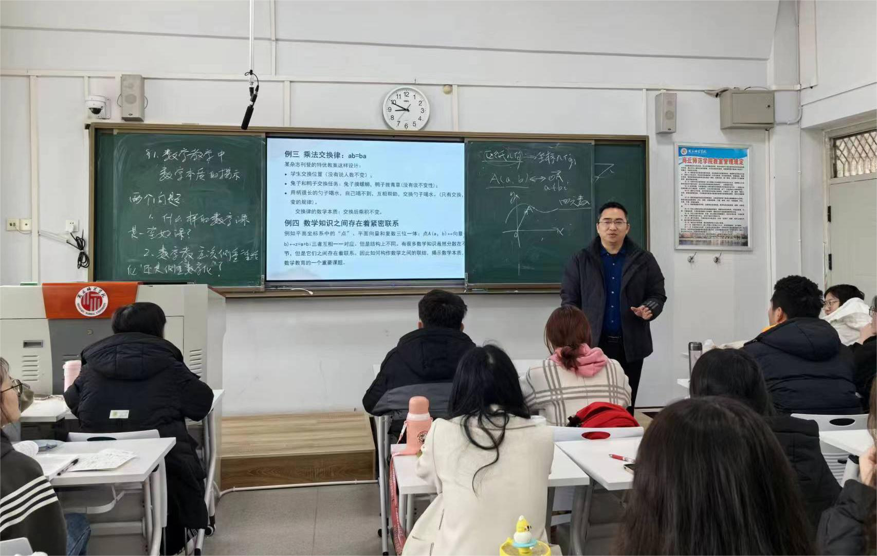 11月15日上午,英国上市365吕松涛老师在睢阳校区1号教学楼509教室进行了《中学数学教材教法》课程教学范式改革公开课,英国上市365副经理任磊、校级督导员荆天及本院部分教师亲临教学范式改革现场进行观摩指导!