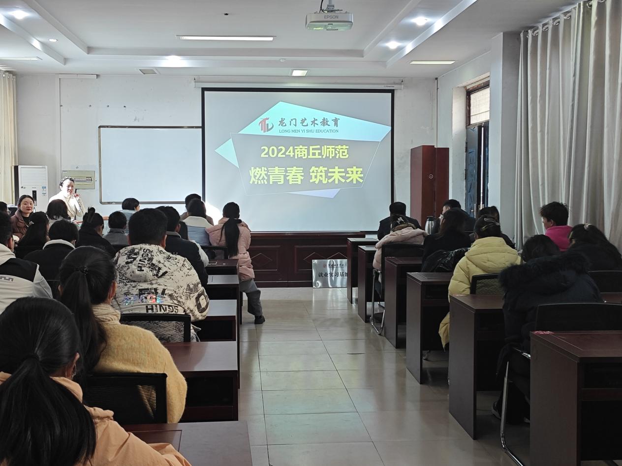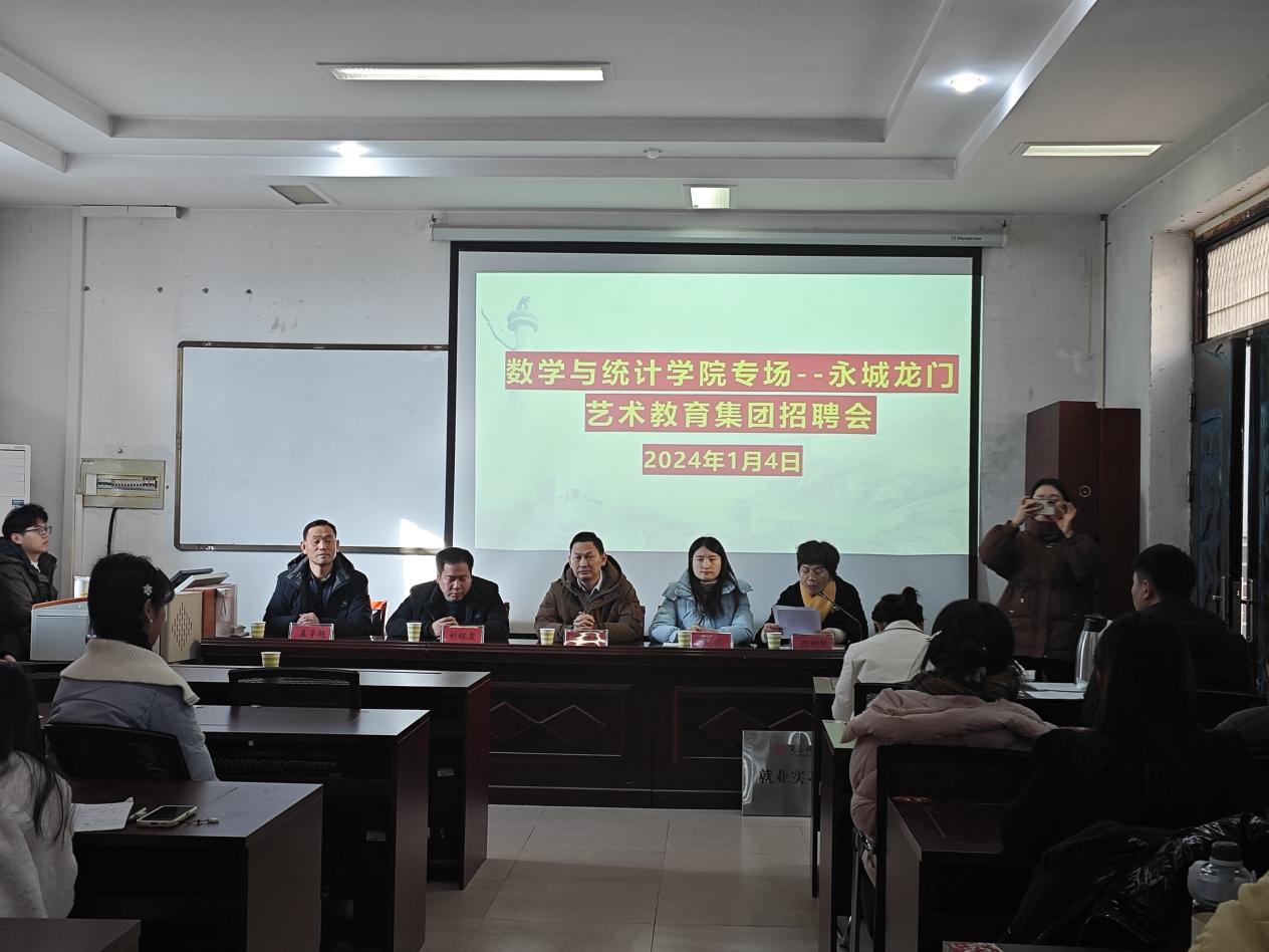 招聘会伊始,永城龙门艺术教育集团相关负责人介绍了该集团的发展历程、规模、职业发展方向、招聘计划、福利待遇等情况。接着,招聘负责人与同学们进行了面对面的交流,并回答了同学们提出的问题,同时表示龙门集团热烈欢迎同学们到本公司进行实习与工作。