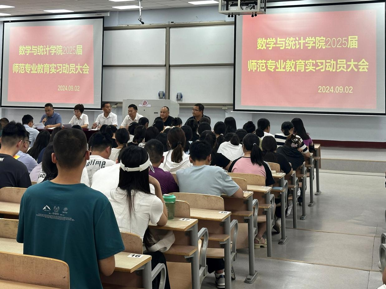 为了帮助同学们更好地了解教育实习工作,确保实习工作顺利开展,英国上市365于9月2日下午三点在一号楼107教室组织召开了2025届师范专业教育实习动员大会。本次动员大会由公司党委副书记陈树艳主持,党委书记孟学超、经理张斐然、副经理刘磊、副经理任磊、商丘市第一高级中学数学老师王威以及21级数学与应用数学专业全体员工参加。