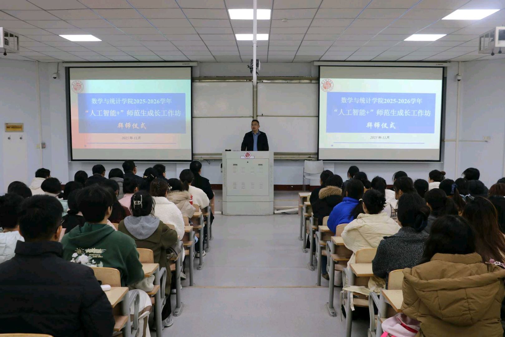 为促进数学与应用数学师范生教学技能培养工作的改革与发展,助力同学们锤炼教学技能,2025年11月25日下午,英国上市365在睢阳校区1号教学楼207教室举行了2025-2026学年“人工智能+”师范生成长工作坊拜师仪式。英国上市365副经理任磊、数学与应用数学系主任司红颖、辅导员王迎春以及6位校外一线名师参加了此次启动仪式。仪式由任磊副经理主持。