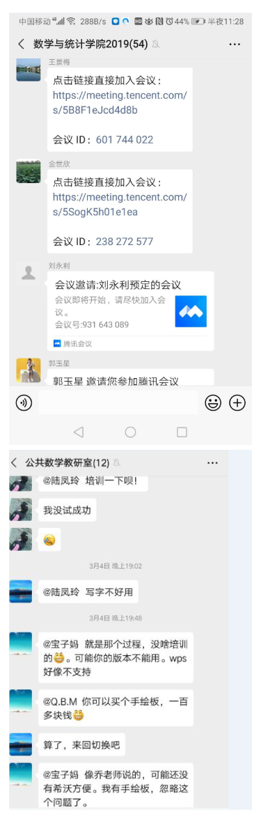 为便于督导和交流,公司要求每位教师上课前将直播地址发布到数学公司群,供全院教师观摩学习和教学督导进行随机听课。各教研室老师相互探讨直播软件使用技巧,优化在线授课流程。