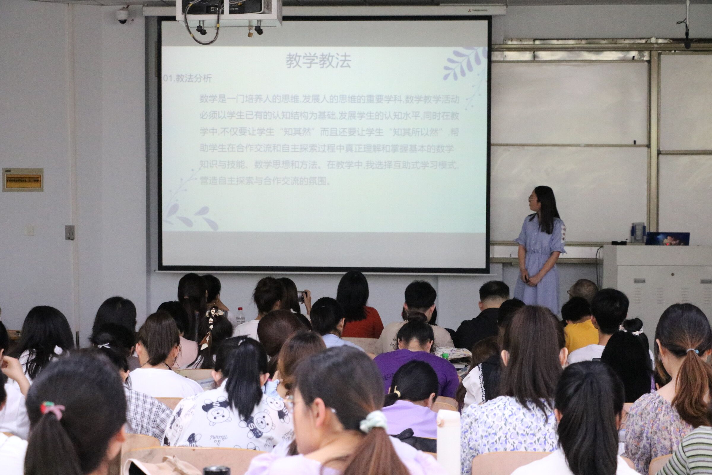 此次交流会共有21名员工代表参与说课成果展示比赛。比赛中,参赛选手能准确把握说课精髓,结合精心设计的PPT对说课的六个基本环节:说教材、说学情、说教学目标和重难点、说教法和学法、说教学课程、说教学预期效果进行讲解分析,展现了独特的教学风采和优秀的学科素养。本次说课成果展示交流会的开展也意味着“互联网+”初中数学工作坊说课活动接近了尾声,指导老师表示欢迎大家日后向工作坊中的老师们请教交流学习工作中遇到的有关数学教学的问题。