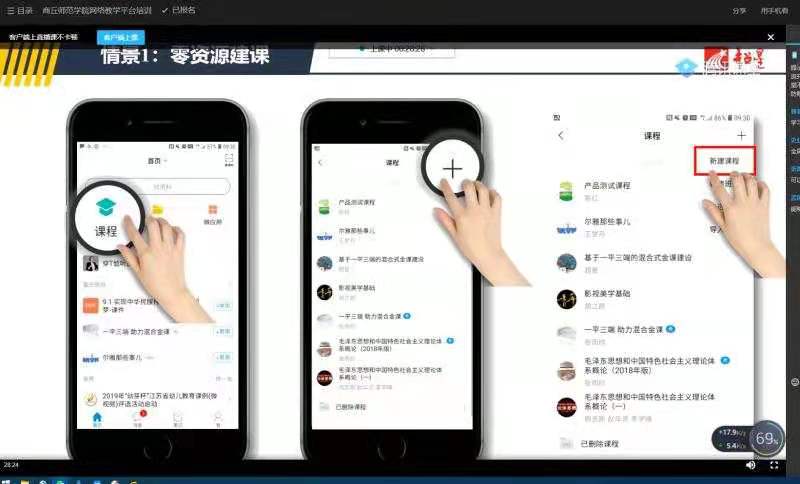 其次,由任磊博士详细讲解《关于如何激活在线课程的若干问题》。任磊从课程创建、课程激活、课程编辑等方面进行了详细的阐述,同时介绍了超星公司“一平三端”智慧教学系统,通过在线签到、课堂抢答、PPT投屏、在线讨论等功能和参会教师进行了深入的互动。