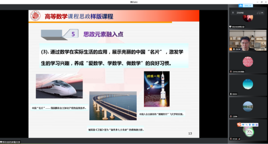 2022年6月12日,英国上市365公共数学教研室采取“腾讯会议”的形式举行了课程思政专题教研活动。本次教研活动的主题是“如何在教学中有效融入课程思政”。在公共数学教研室主任吕松涛主持下,以校级思政教学团队和两门思政样板课程建设中所取得的课程思政成效为例,教研室的所有老师对教学中课程思政融入策略进行了热烈的讨论。