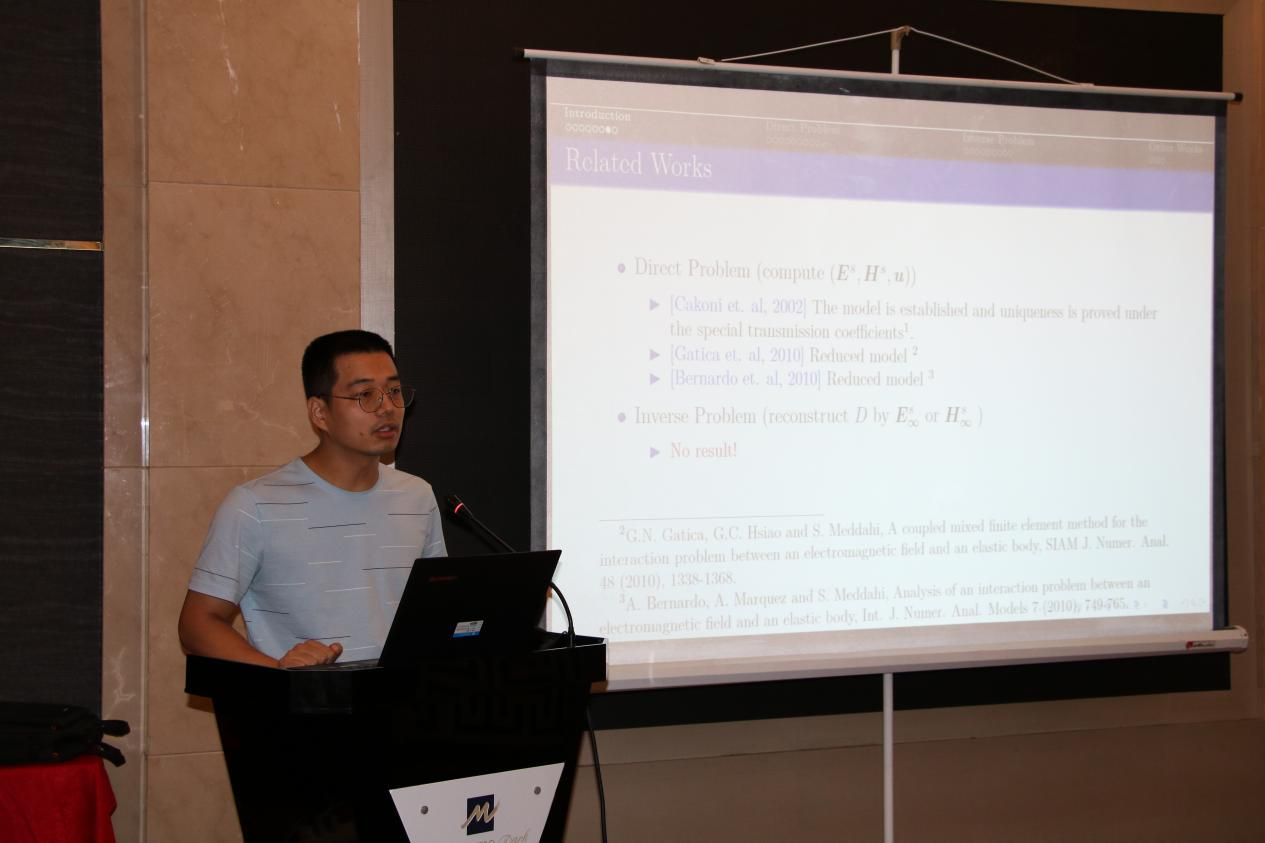 河南财经政法大学朱铁磊,做了题目为《Direct and inverse electromagnetic scattering by a bounded elastic body》的报告。