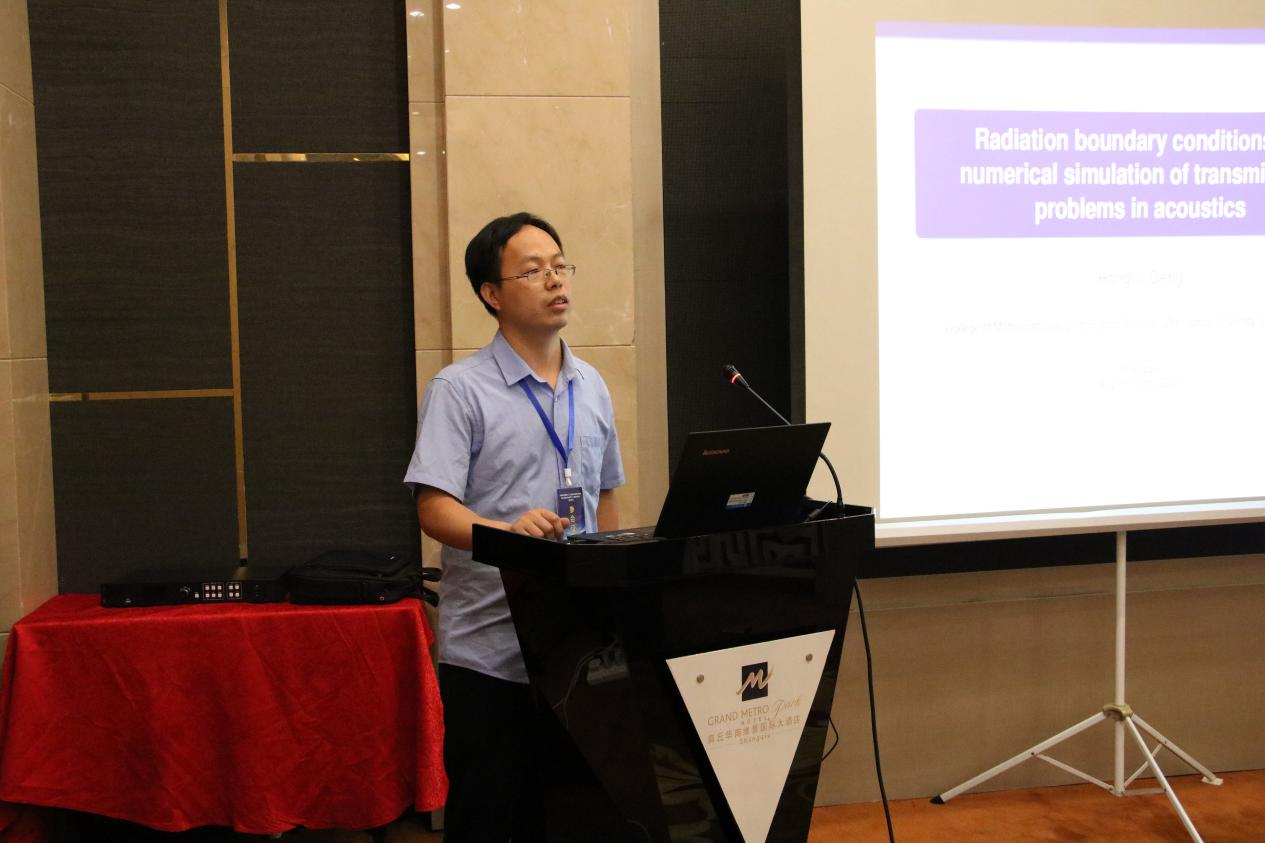 郑州轻工业大学耿宏瑞,做了题目为《Radiation boundary conditions for numerical simulation of transmission problems in acoustics》的报告。
