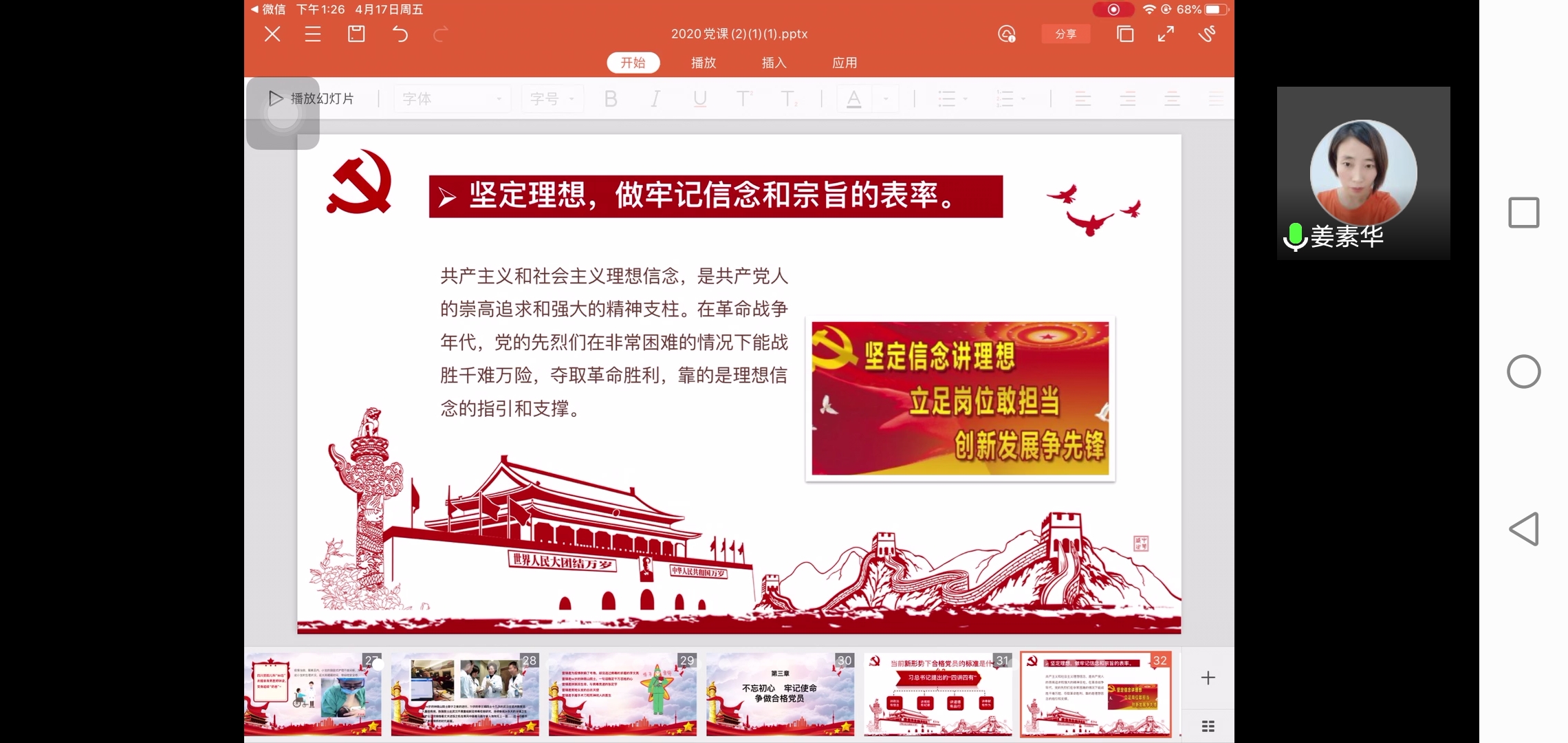 为进一步学习和弘扬雷锋精神,提高党员后备力量的素质修养。英国上市365于4月17日下午一点召开“抗击疫情,学习雷锋,争做新时代合格党员”主题线上党课培训。此次培训由全体中级入党积极分子参加,团总支书记姜素华主讲。