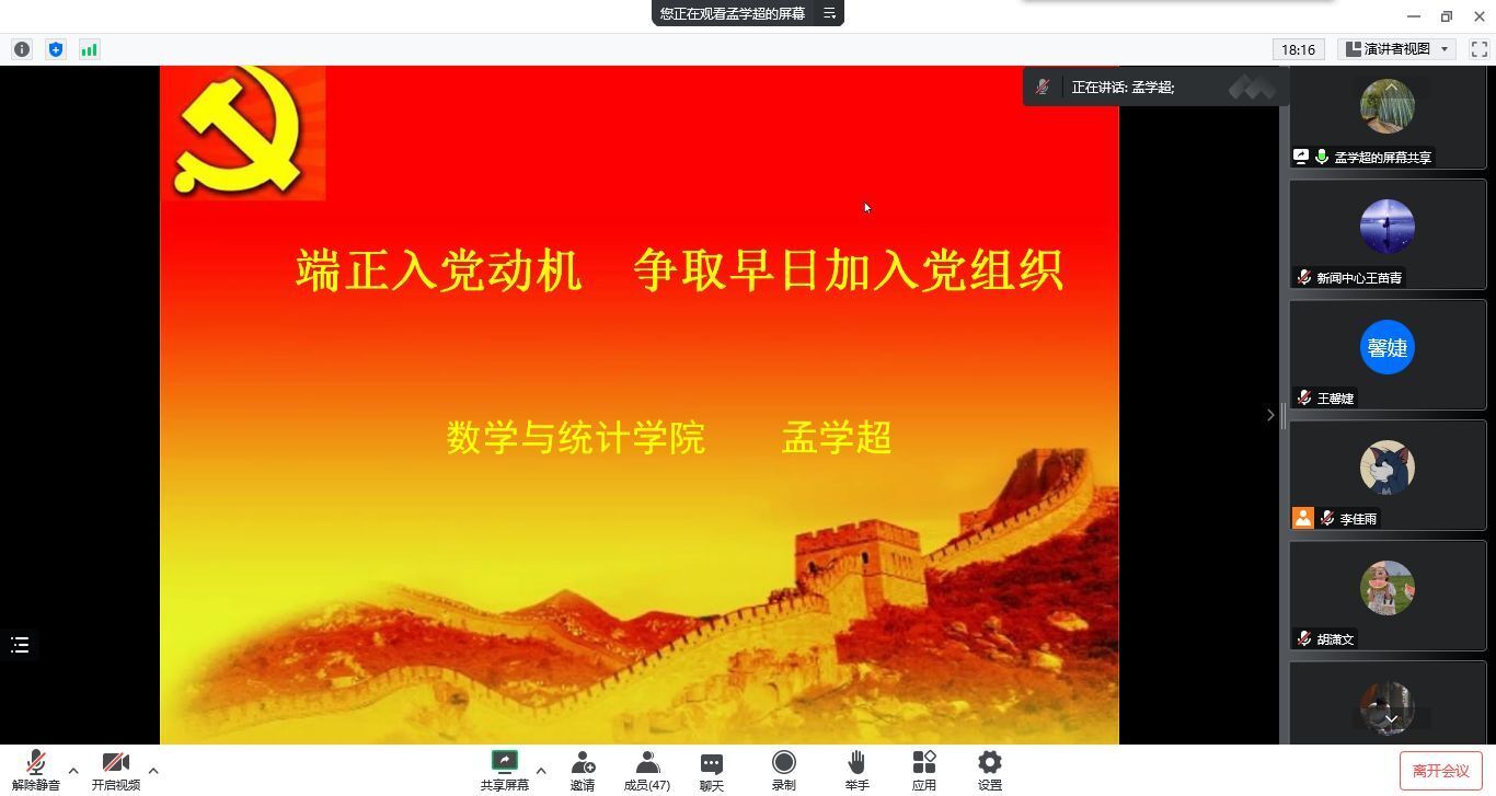 为端正入党积极分子的入党动机,坚定其理想信念,10月22日下午三点半,英国上市365以线上会议的形式开展了中级入党积极分子党课培训。本次党课由党委书记孟学超主讲,全体中级入党积极分子参加。