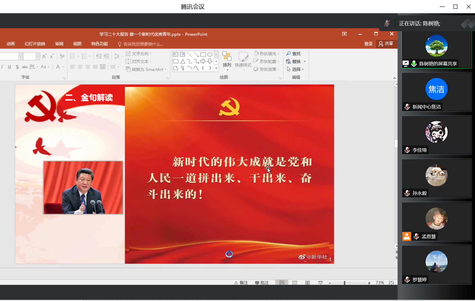 本次党课培训主要围绕“任仲平来了”、“二十大的金句解读”以及“做一个新时代的优秀青年”三方面内容展开。首先,陈树艳副书记从“十年砥砺奋进 绘写壮美画卷”二十大召开之际讲到到胜利闭幕,随后,陈树艳副书记结合员工学习、生活教育他们怎样“做一个新时代的优秀青年”,要求青年员工坚定自己的理想信念,矢志奋斗去练就一身过硬本领,不畏险阻去锤炼高尚的品格,不断艰苦奋斗,开拓创新,谱写新时代中国特色社会主义更加绚丽的华章。