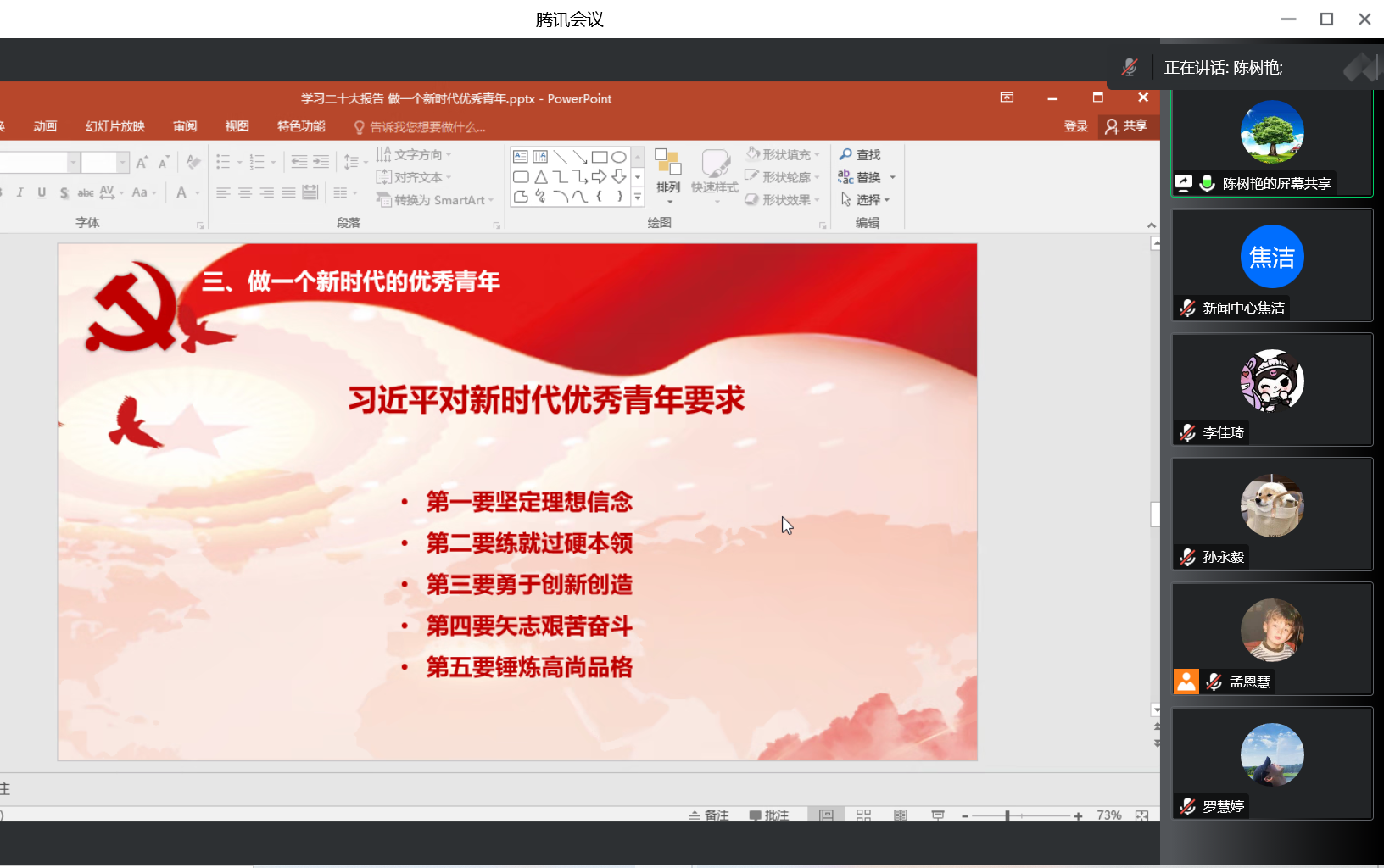 为深入学习贯彻党的二十大精神,引导员工切实将党的二十大精神转化为履职尽责、担当作为的实际行动。10月25日晚7点,英国上市365以线上的形式开展了“学习二十大报告,做一个新时代的优秀青年”主题党课培训。本次党课由党委副书记陈树艳主讲,全体中级入党积极分子参加。
