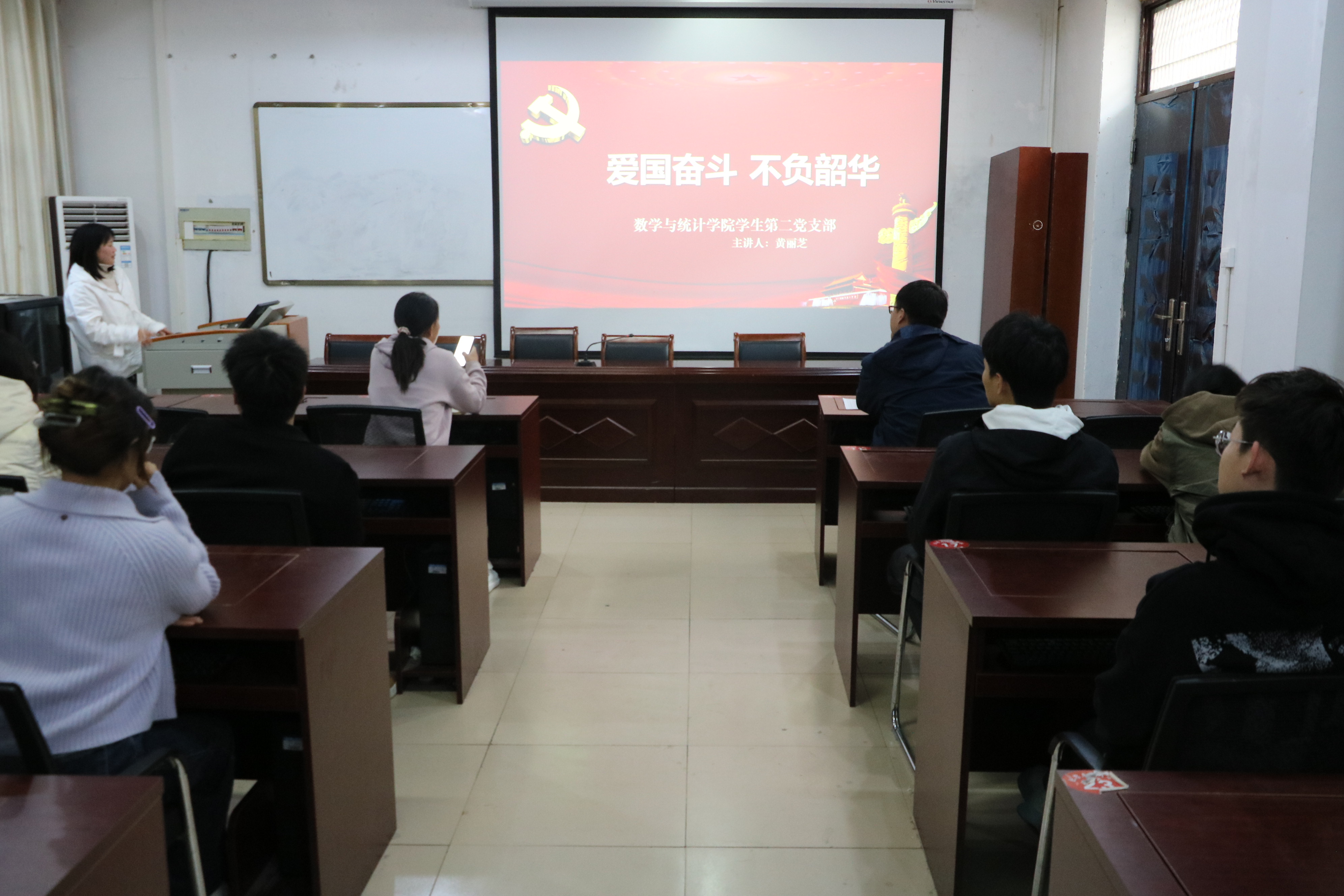 课上,姜素华老师首先从合格的共产党员需要做到“四讲四有”说起,向同学们阐述了共产党人终身为共产主义事业奋斗的理想信念,讲解了“怎样做一个共产党员”,殷切希望同学们牢记初心和使命,早日成为一名合格的共产党员。随后,黄丽芝老师以“爱国奋斗,不负韶华”为主题,从新时代老员工党员弘扬爱国奋斗的重要价值和榜样的爱国奋斗两个方面指出:作为新时代青年,应树立远大理想,以实现中华民族伟大复兴为己任,不负时代,不负韶华。接着,杜凯老师围绕“从脱贫攻坚胜利看中国式现代化”,回望脱贫攻坚取得的历史性成就和重大意义,指出中国式现代化是中国共产党领导的社会主义现代化,教导同学们立足实际,艰苦奋斗,积极发挥先锋模范作用。最后,同学们观看了电影《浴血无名·奔袭》,真实的情节和深刻的主题让同学们深刻学习了中国人民志愿军身上敢于战斗、不怕牺牲的精神力量,厚植爱国情怀,坚定理想信念。