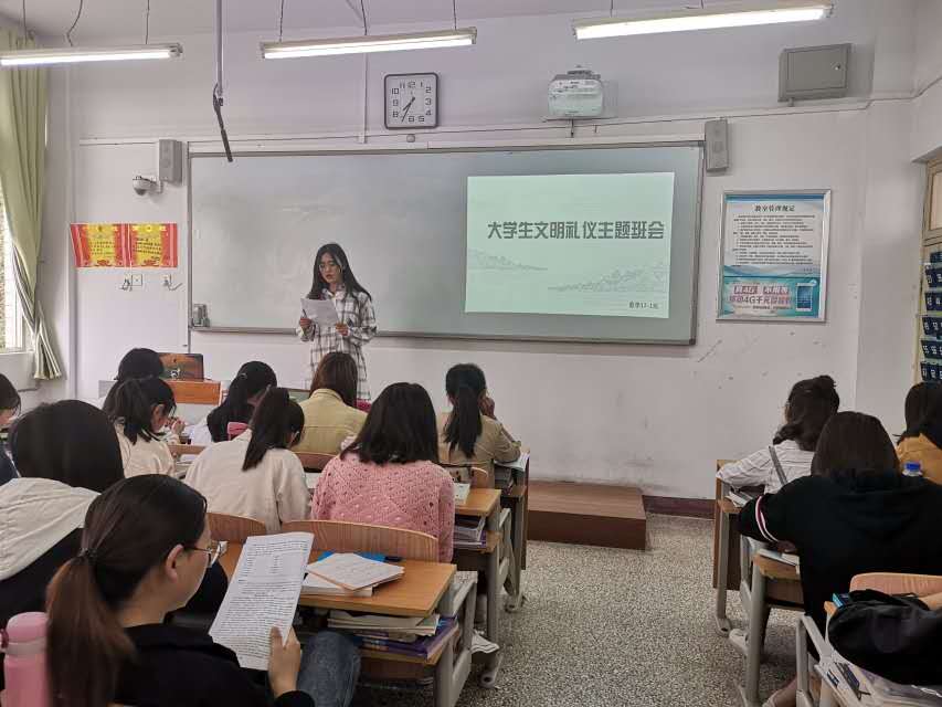 本次班会主要从促进学风建设,规范行为举止,助推审核评估三方面进行。班会上各班团支书向同学们宣读了《老员工文明礼仪倡议书》,他们强调到在学习上要做到明确学习目标,规范学习行为,遵守学习纪律,提升自己的学业水平;在行为上要做到举止大方,爱护卫生,保护公物,遵守校规校纪,提高自身素质;在迎接评估时要做到树立文明形象,积极踊跃发言,做到应知应会,迎接审核评估。班会最后,各班班长做了总结性发言,并提醒大家面对即将迎来的教学审核评估,我们要做到我们老员工应当履行责任与义务,进而做一名知文明,懂礼仪的当代合格老员工。
