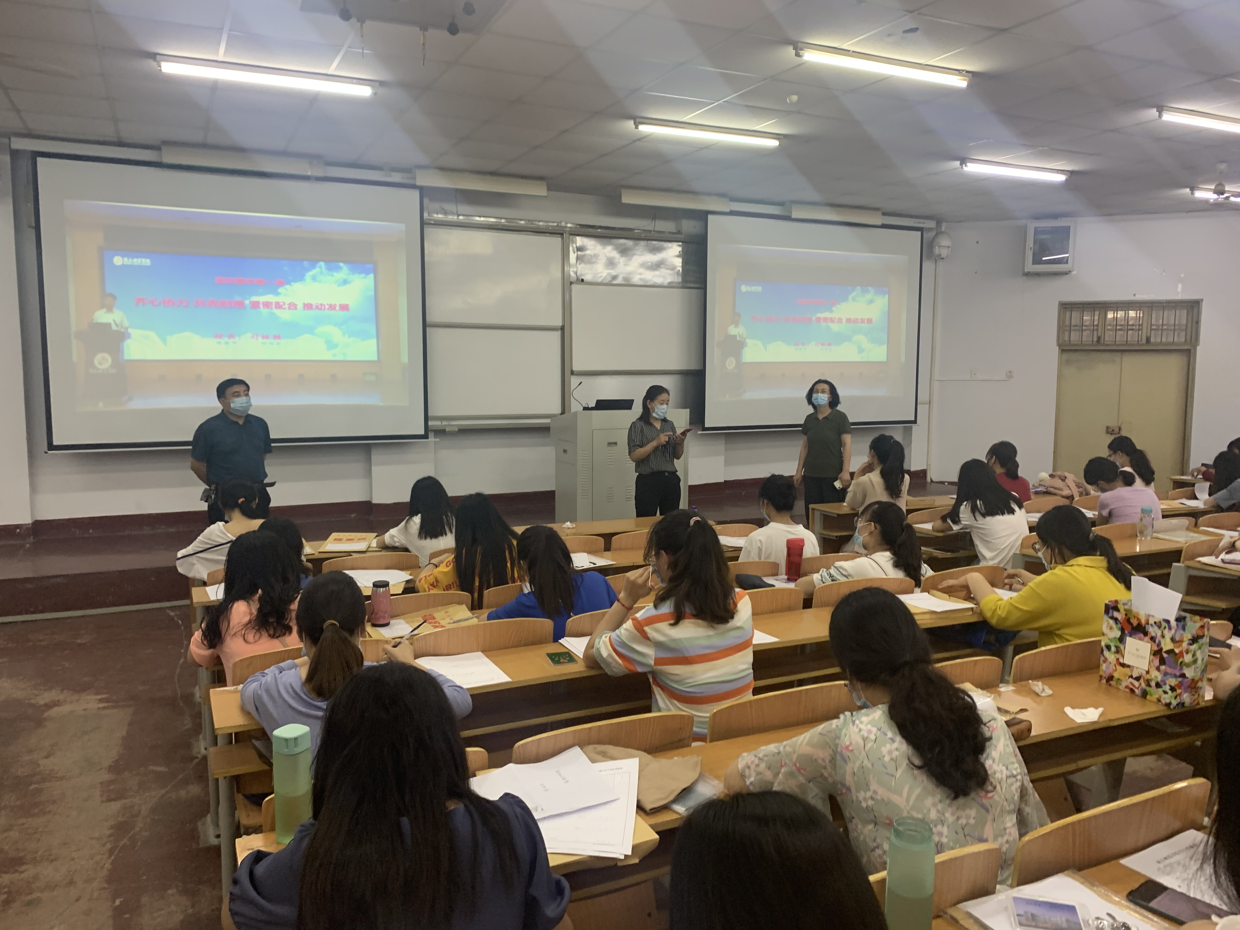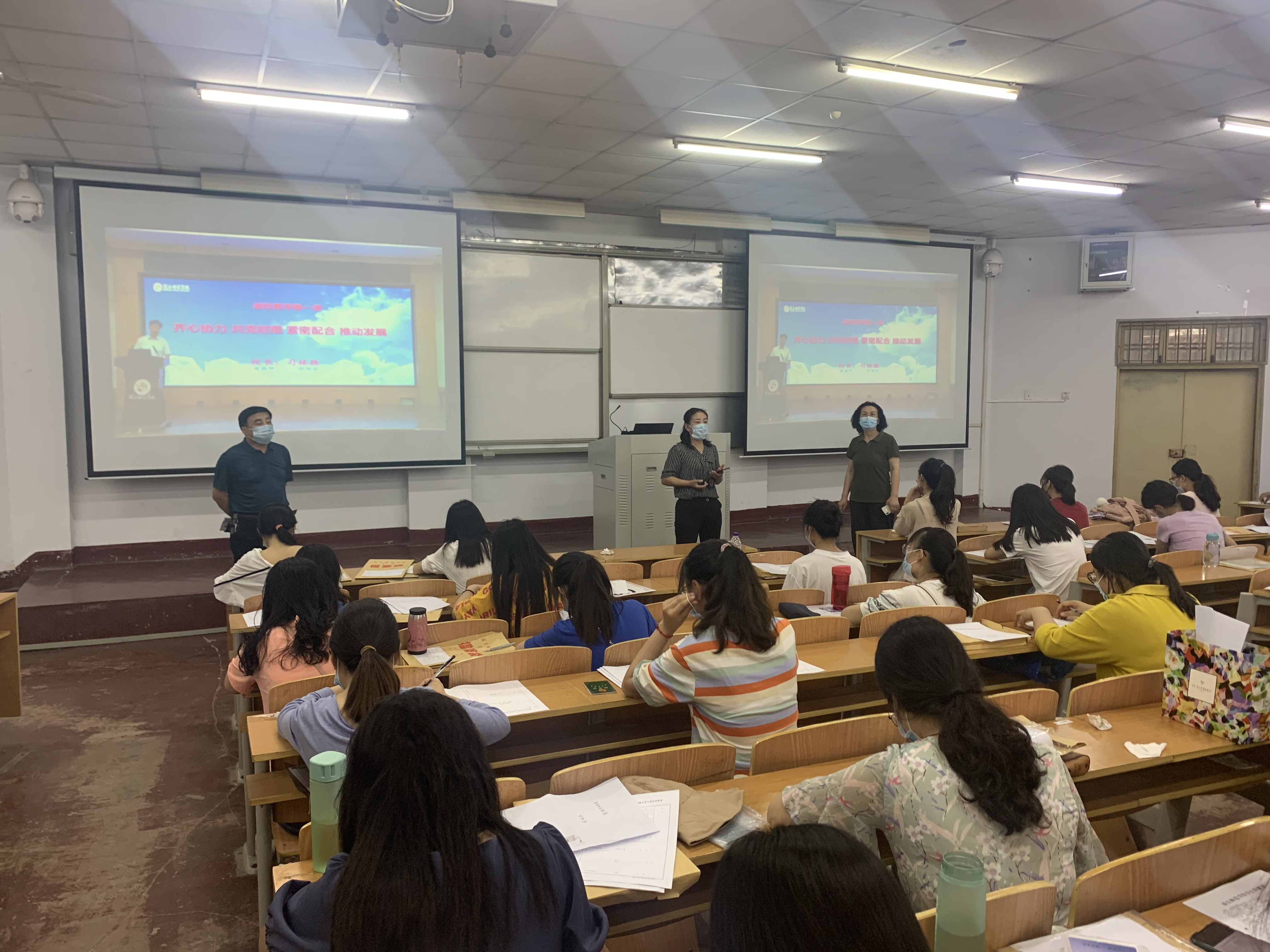 上午八点三十分,返校第一课正式开始。校领导们依次发表了讲话,师生代表也进行了发言。其中党委书记介晓磊以《弘扬爱国主义精神,展现青年员工风采》为题展开深入讲述。董事长司林胜以《齐心协力,共克时艰,紧密配合,推动发展》为题,围绕公司整体工作、员工管理、教学安排等,就公司整体工作进行部署。副董事长郭文佳以《扎实做好疫情防控工作,确保公司开学安全》为题,介绍公司疫情防控的整体安排和具体措施。教师代表刘培培,员工代表张沈也依次进行了发言。同时全体观看师生还齐唱了由音乐公司创作的歌曲《武汉,我们和你在一起》。