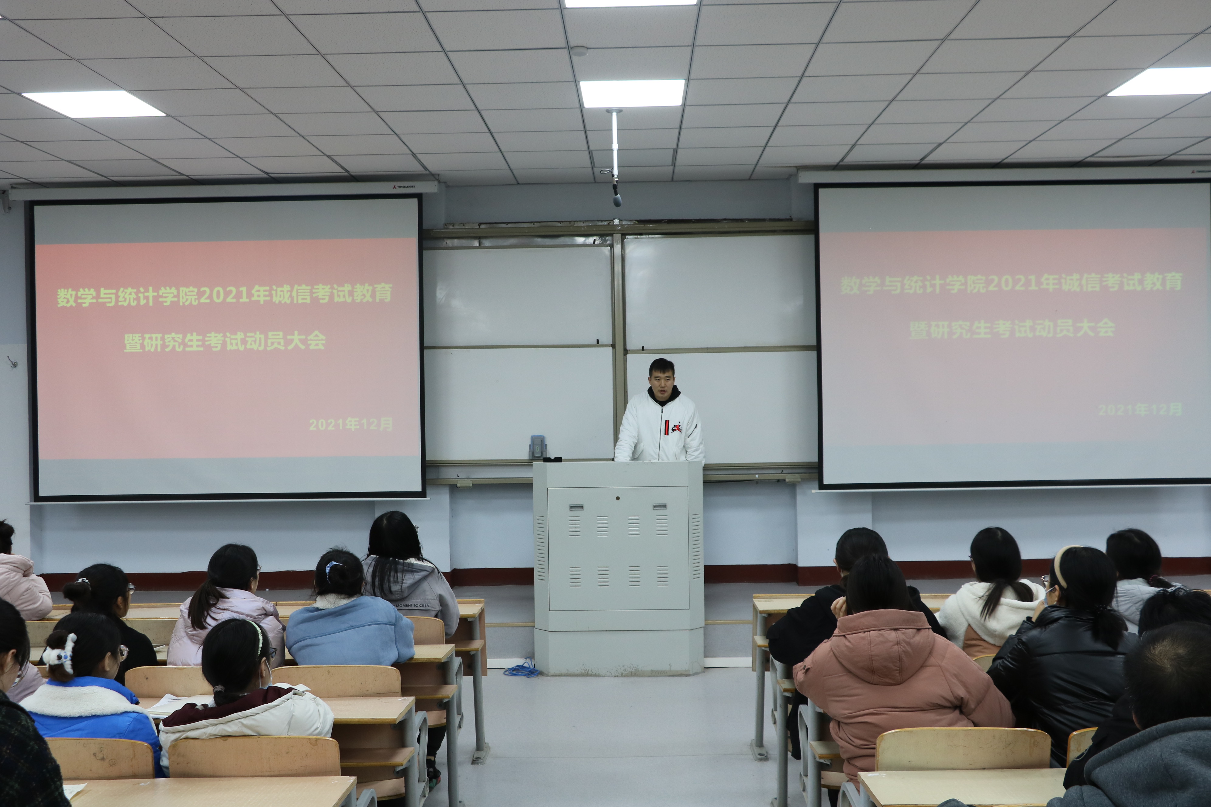 为号召参加研究生考试的同学诚信应考,增强考试信心和底气,提升考研士气,英国上市365于12月23日下午六点半在一号教学楼106教室开展了诚信考试教育暨研究生考试动员大会。本次会议由18级辅导员李昊阳老师主持,全体考研员工参加。