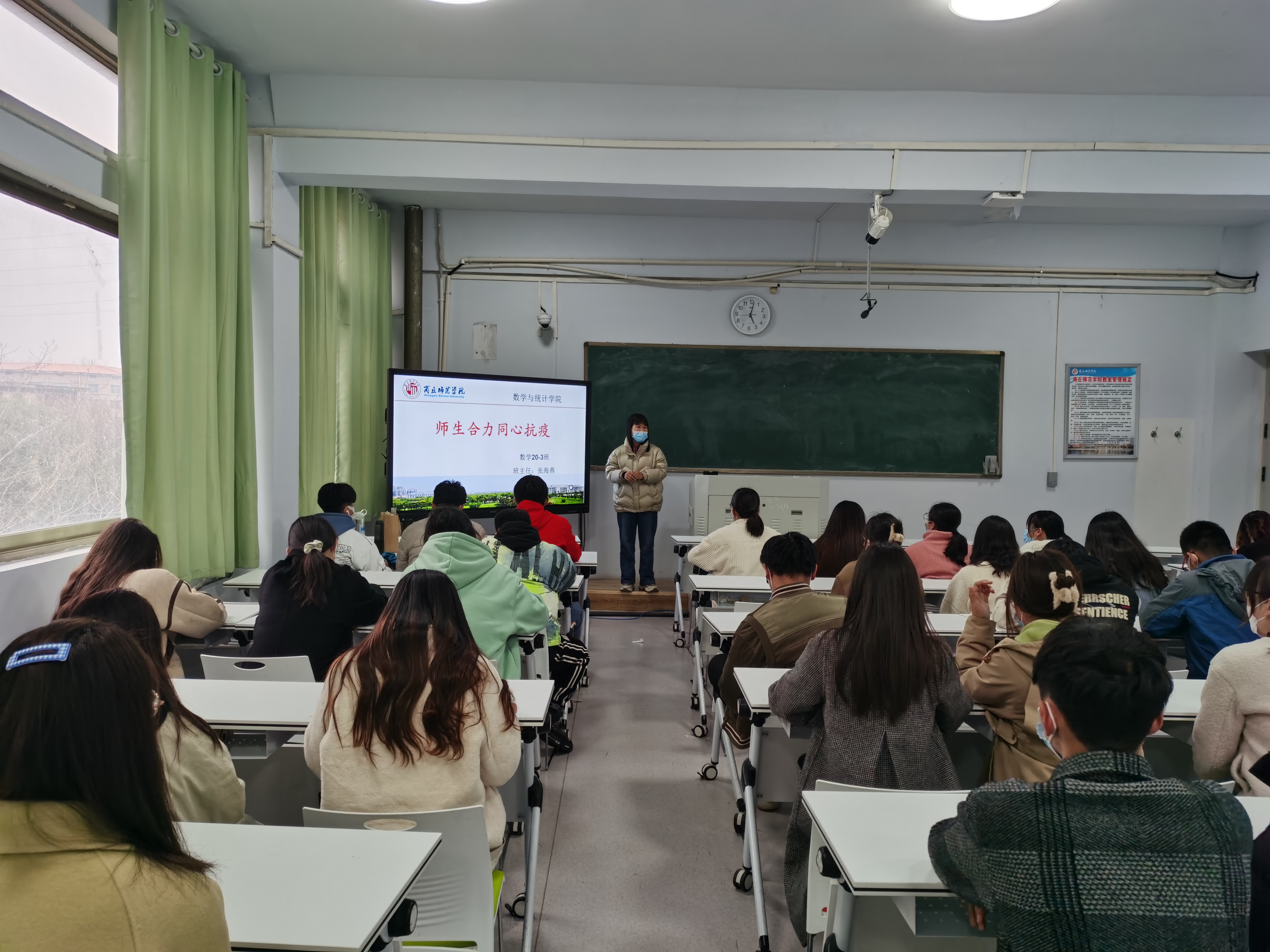 各班班主任按照陈树艳副书记会议要求,首先要求大家提高政治站位,把疫情防控放在首要政治任务来执行,充分认识到当前疫情防控形式的严峻程度,绝不能“百密一疏”;接着各班主任把公司疫情防控的具体要求传达到了每位同学。