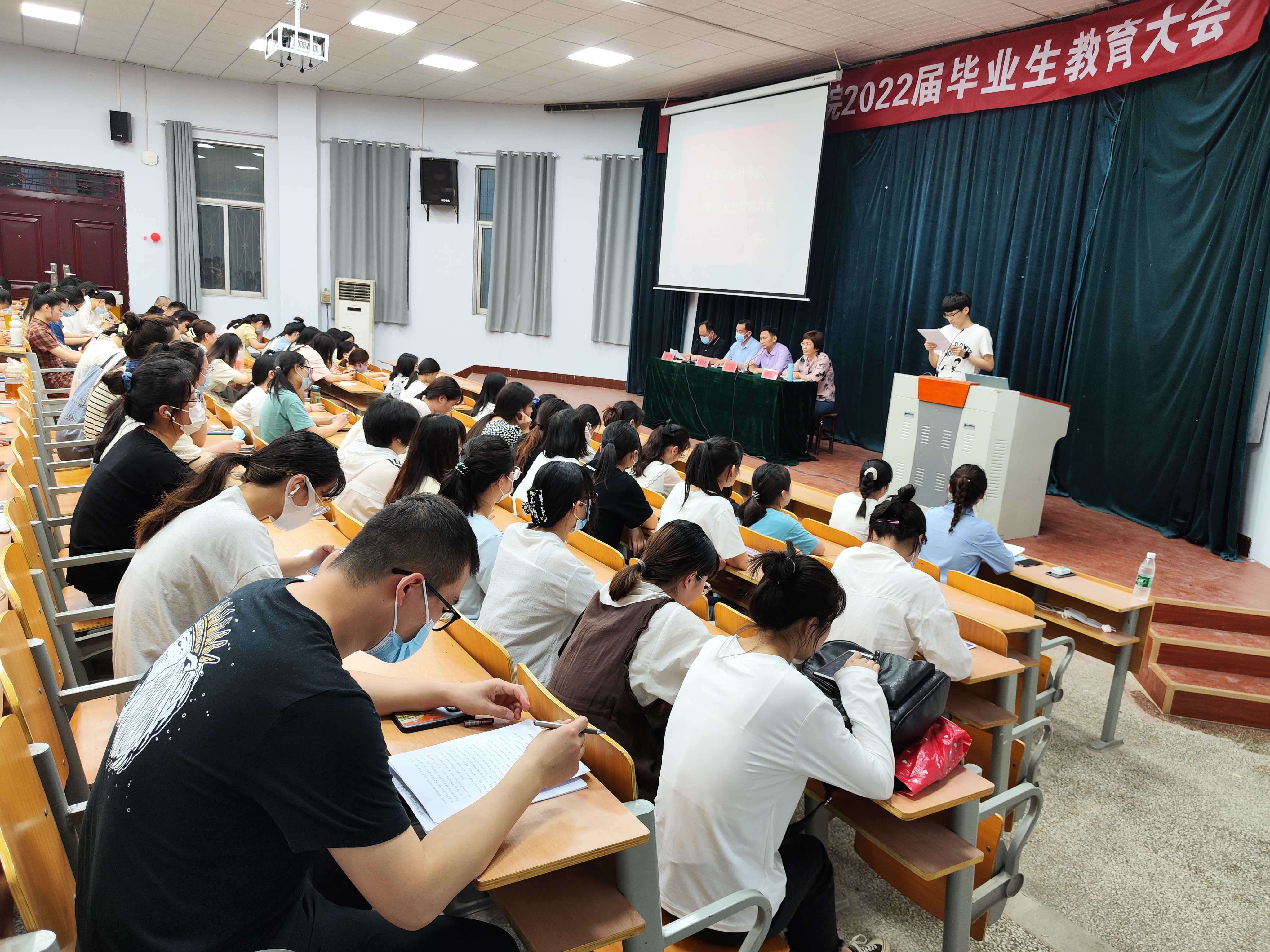 毕业生教育大会是公司毕业生工作中的一个重要环节,下一阶段公司将围绕公司毕业生教育方案做好毕业生离校教育工作,确保毕业生安全、文明、和谐离校。希望各位毕业生在未来的学习与工作中能够秉承“应天归德,智圆行方”的校训精神,以积极乐观的心态书写人生华丽篇章。