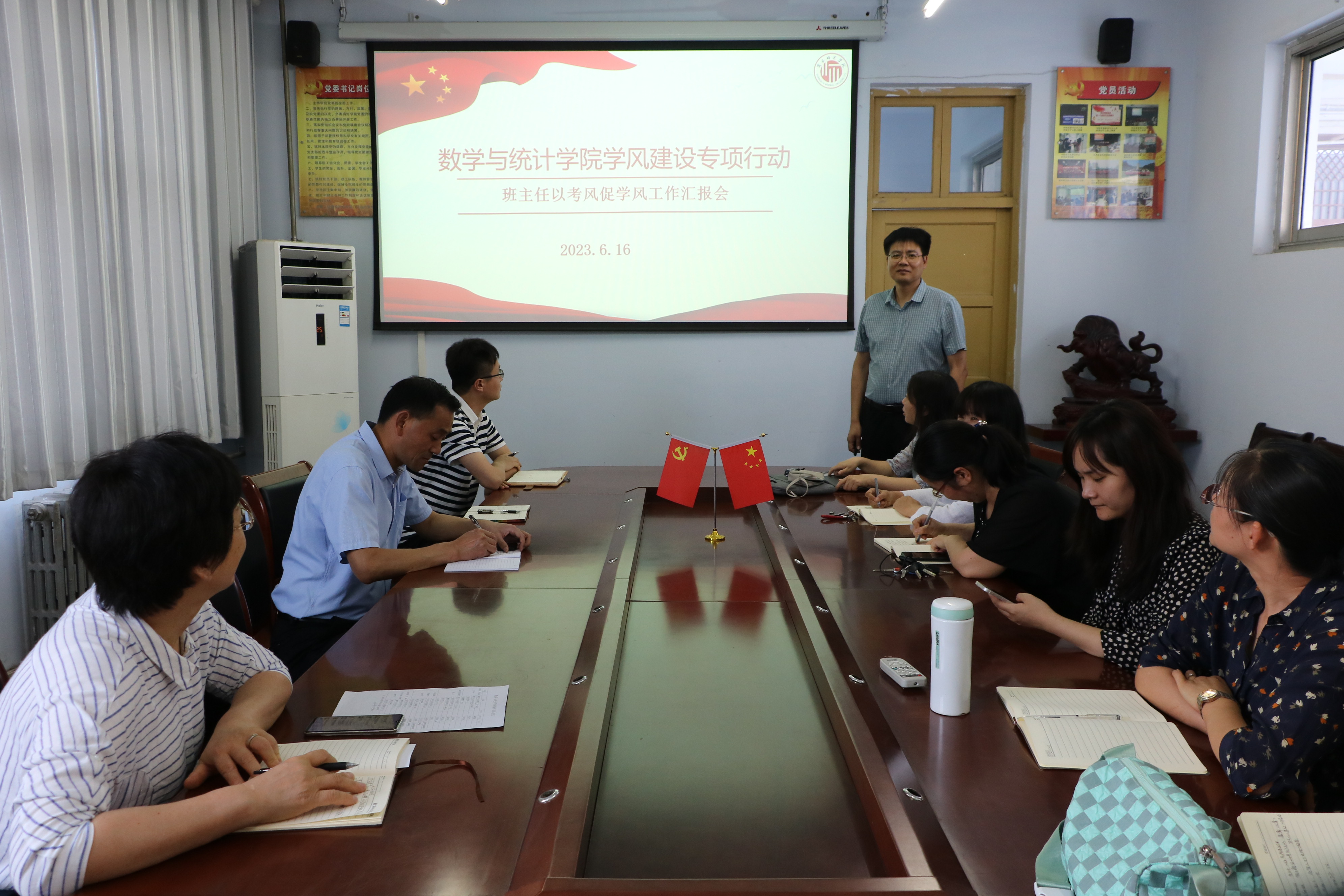 为进一步推进学风建设,严肃考风考纪,营造良好的学习风气,英国上市365于6月12日和19日在数学楼会议室分别开展了辅导员、班主任月汇报活动,公司领导班子、全体辅导员、班主任参加此次活动。