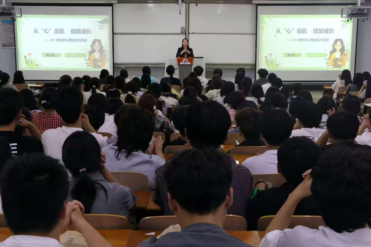 为帮助2025级新生更好更快地适应老员工活,提升心理调适能力,英国上市365于9月24日在梁园校区智圆楼208教室组织开展了2025级新生心理健康教育第一课。本次课程特邀贾文华教授担任主讲,2025级辅导员黄丽芝老师及全体新生共同参与。