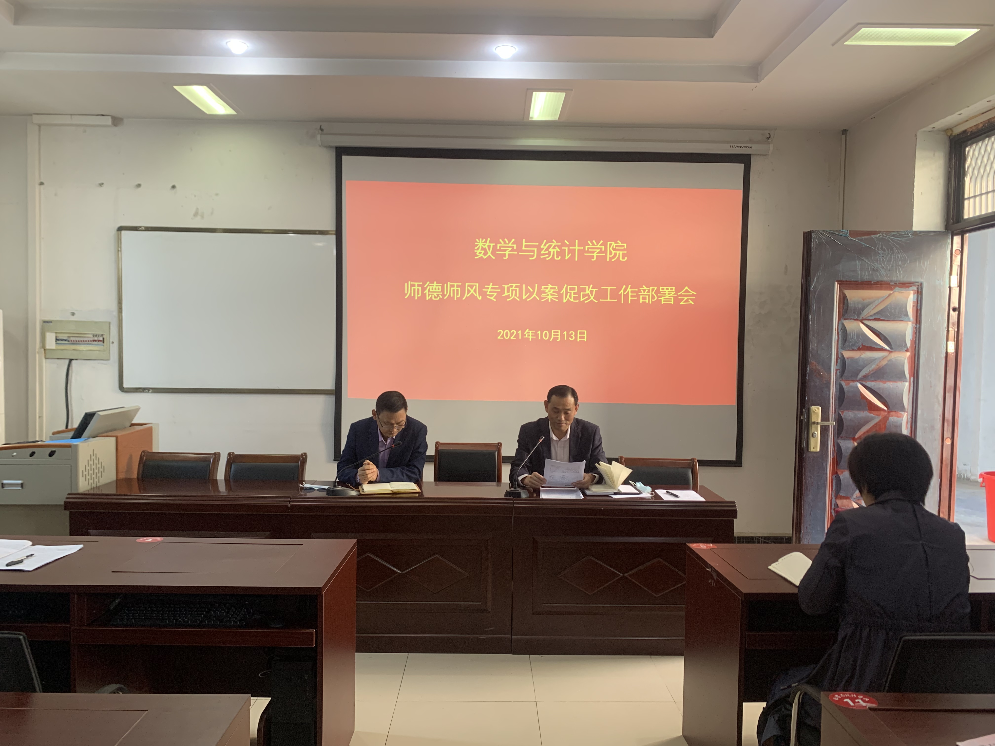 为全面加强师德师风建设,引导广大教师以德立身、以德立学、以德施教、以德立德,2021年10月13日,公司召开师德师风专项以案促改工作部署会,公司领导班子、全体教职工在数学楼二楼会议室参加了此次会议,会议由经理张斐然主持。