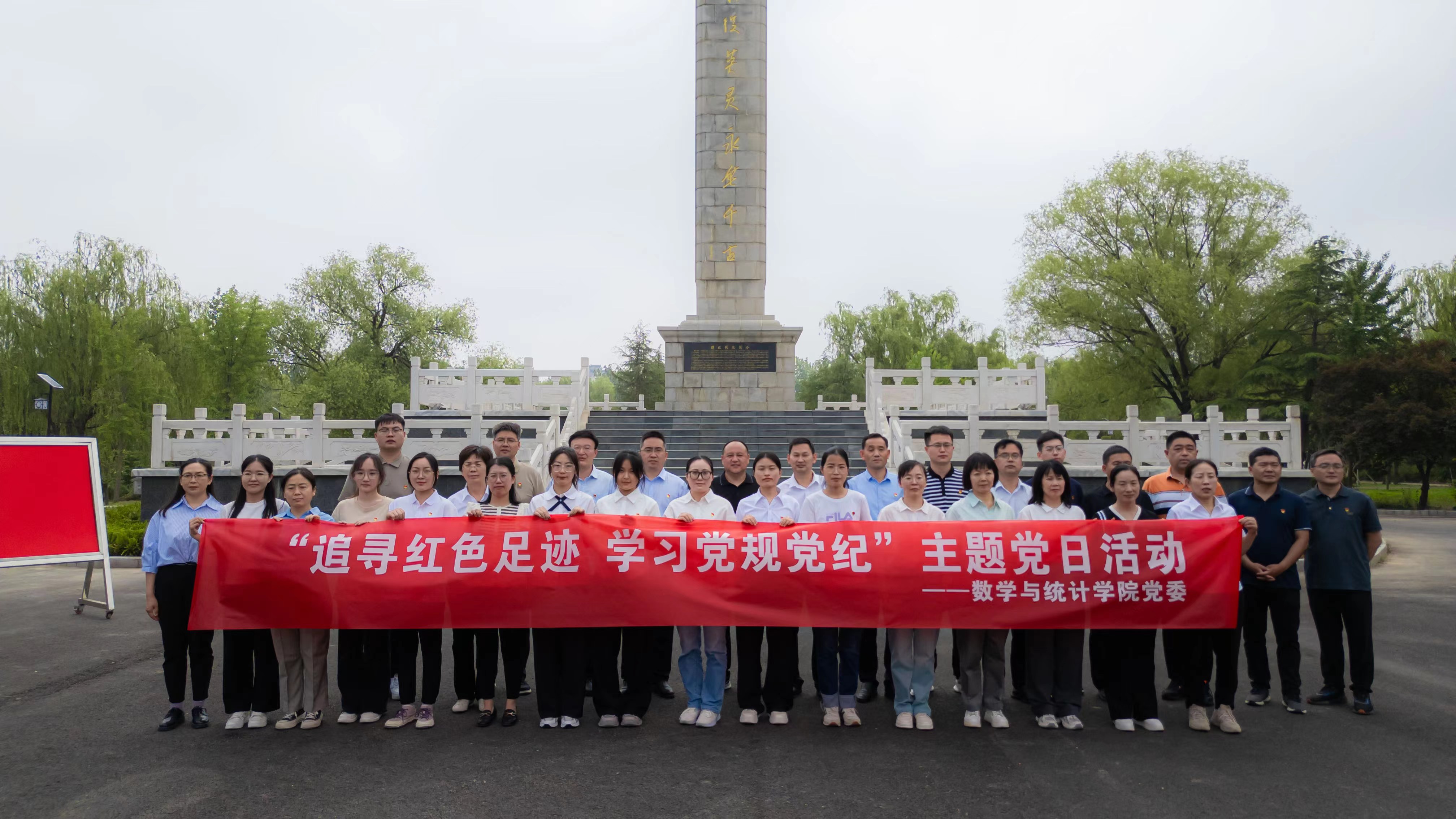 在睢杞战役纪念碑前,全体党员在党旗下重温入党誓词,铿锵的誓词,坚定的承诺,让每一位党员的心灵受到洗礼。随后,教工第一党支部书记孙寿文,员工第三党支部书记杜凯进行了微党课宣讲,与全体党员共同追忆了这段豫东大地上辉煌的革命历史。
