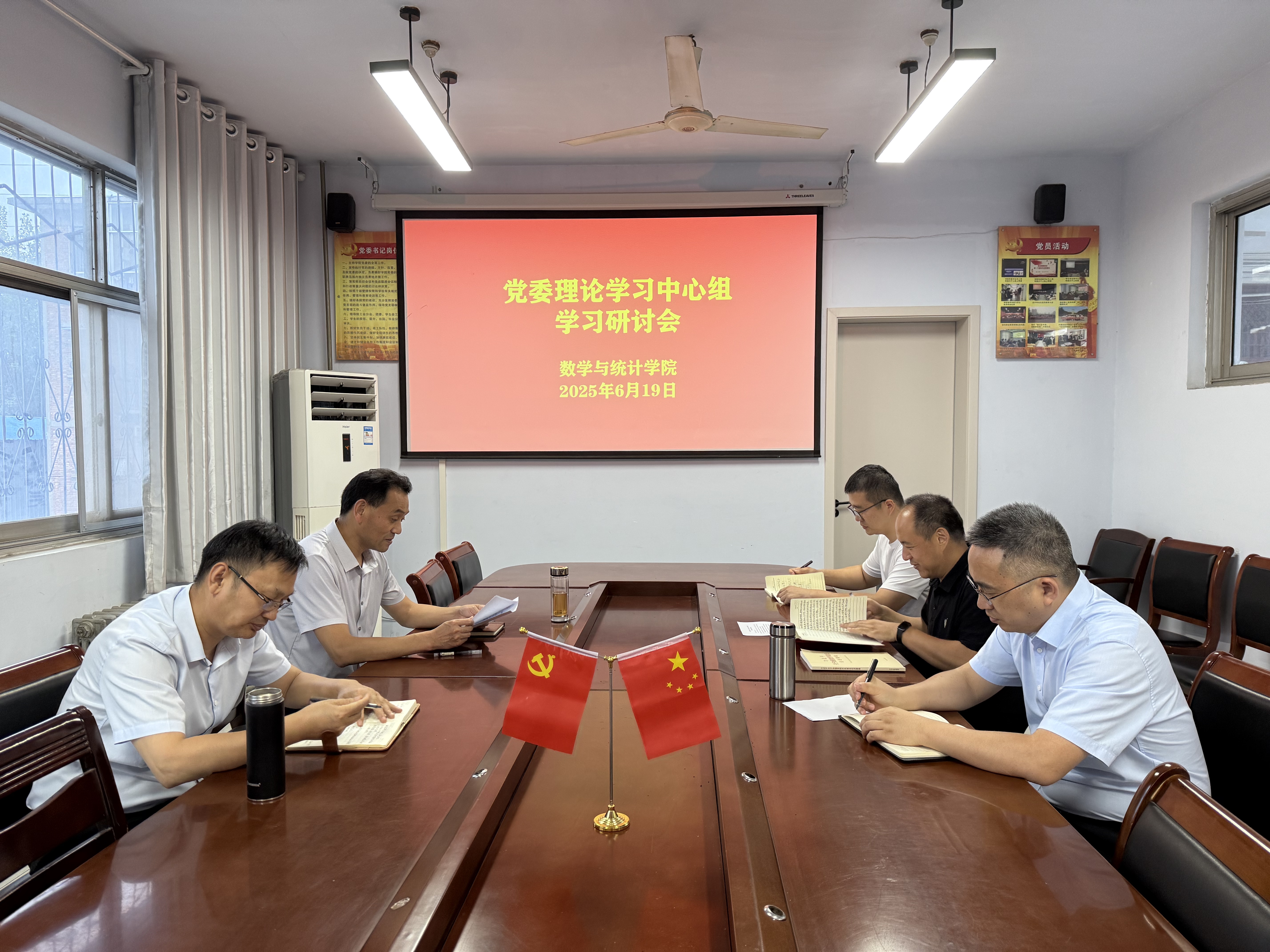 6月19日,公司党委理论学习中心组在数学楼204党建活动室召开学习会议,围绕习近平总书记考察河南重要讲话精神开展专题研讨。公司党委委员参加了此次会议,会议由公司党委书记孟学超主持。
