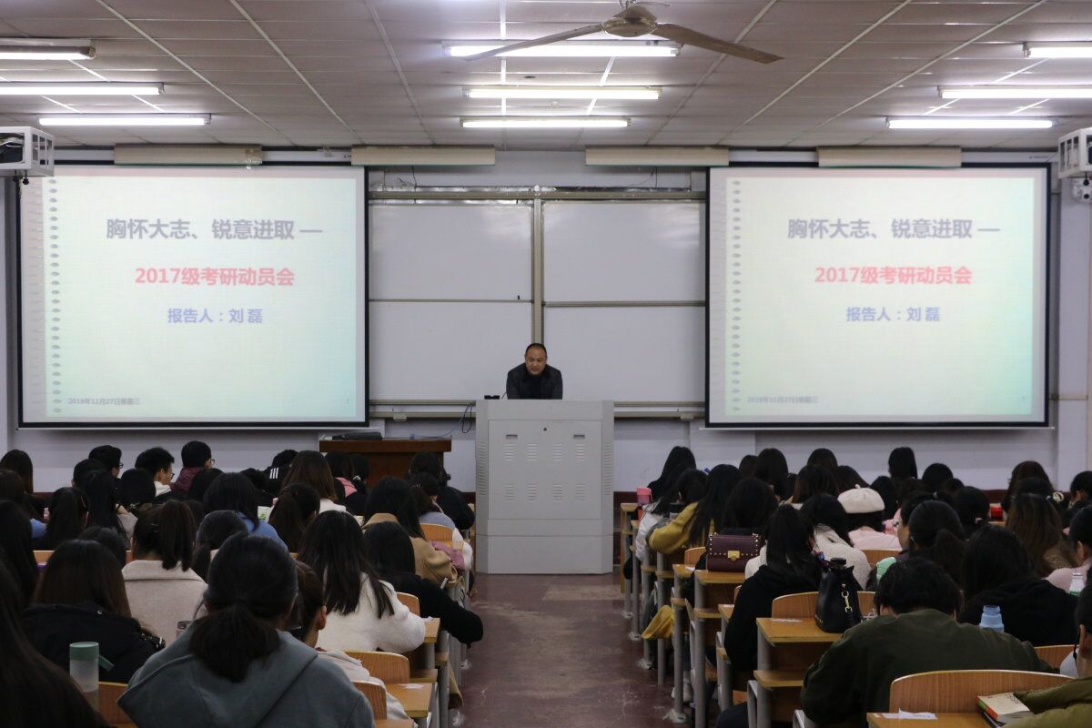 为进一步增强同学考研的积极性,帮助同学树立正确的奋斗目标,深入了解考研内涵,增加考研的信心。11月27日晚上7点,英国上市365于1号教学楼106教室召开了“2017级考研动员大会”。本次会议由副教授刘磊做动员报告。