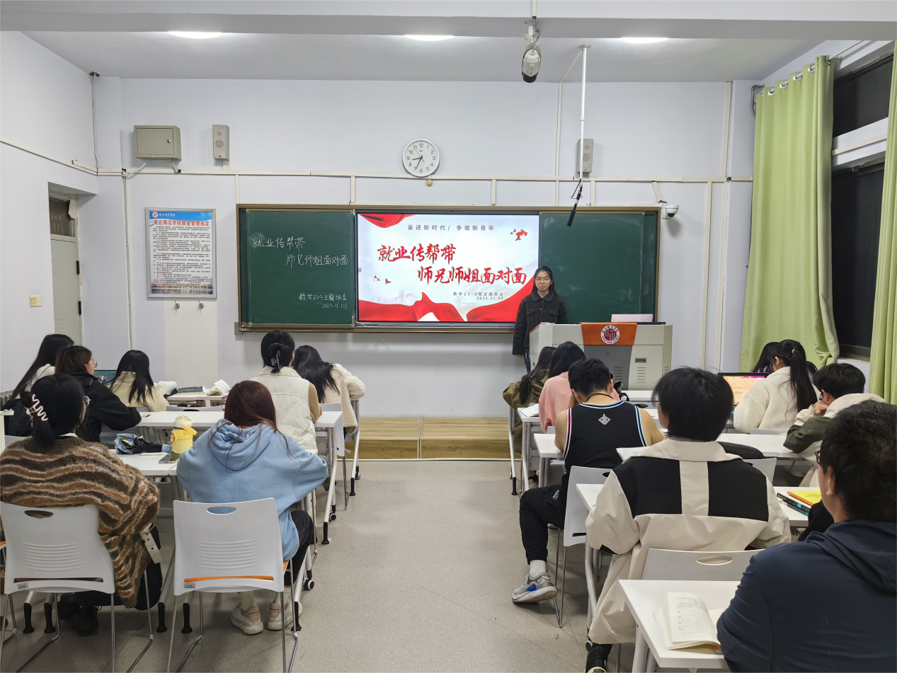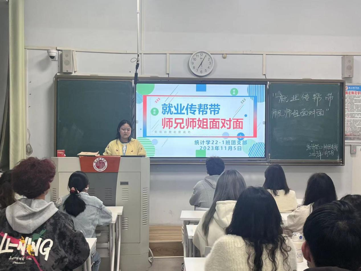 为更好地引导员工树立正确就业观、择业观,树立就业意识、做好职业规划,英国上市365于11月5日晚上七点在一号教学楼开展“就业传帮带·师兄师姐面对面”主题团日活动,活动邀请到往届优秀毕业生代表张璐丹、连雨振进行分享交流,各班团支书主持本次活动。
