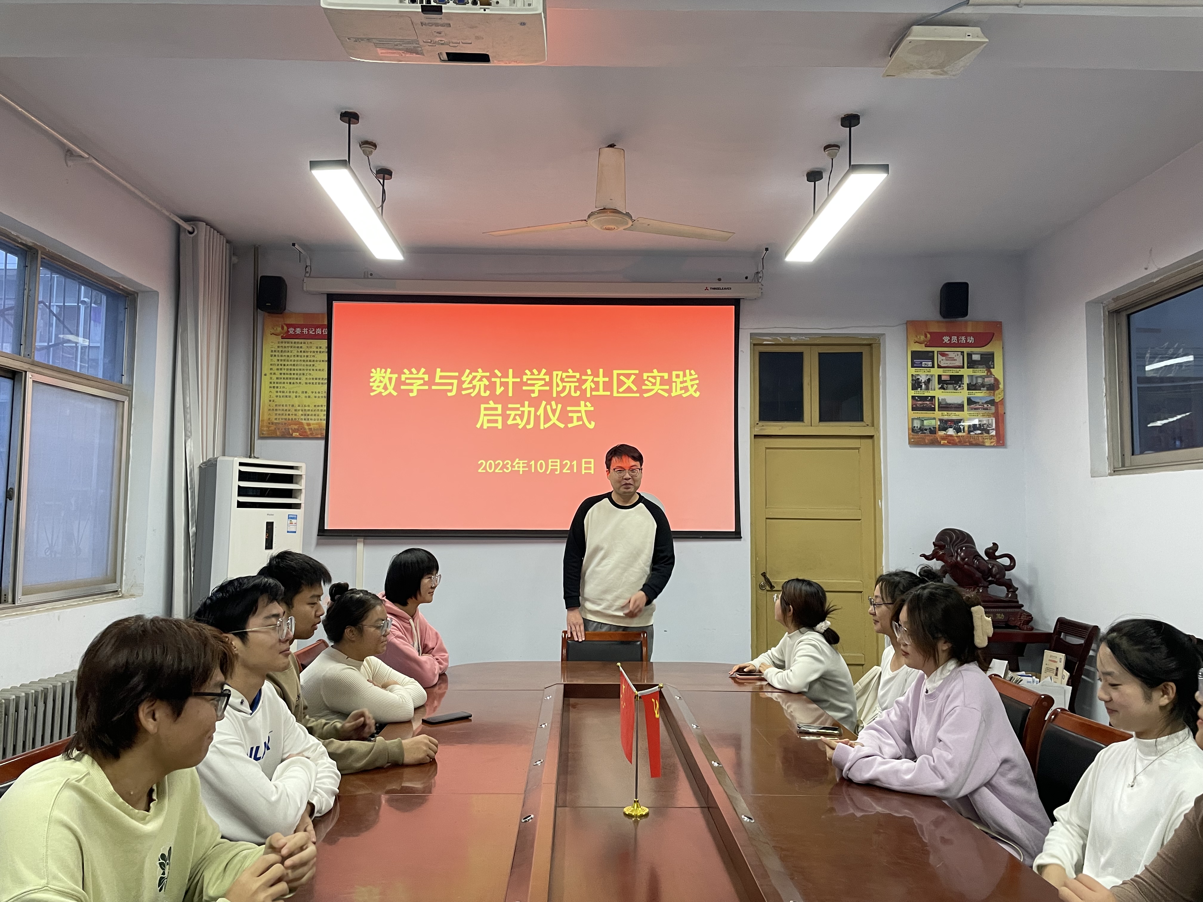 为贯彻落实习近平总书记关于青年工作的重要思想,以实际行动践行习近平总书记在庆祝建党百年大会上的讲话精神,引导和帮助广大青年员工在社会课堂中受教育、长才干、作贡献,10月21日,数学与统计公司在数学办公楼204会议室举行社区实践启动仪式。团委副书记杜凯,员工干部、各社会实践队伍代表参加启动仪式,启动仪式由员工会成员安嘉怡主持。