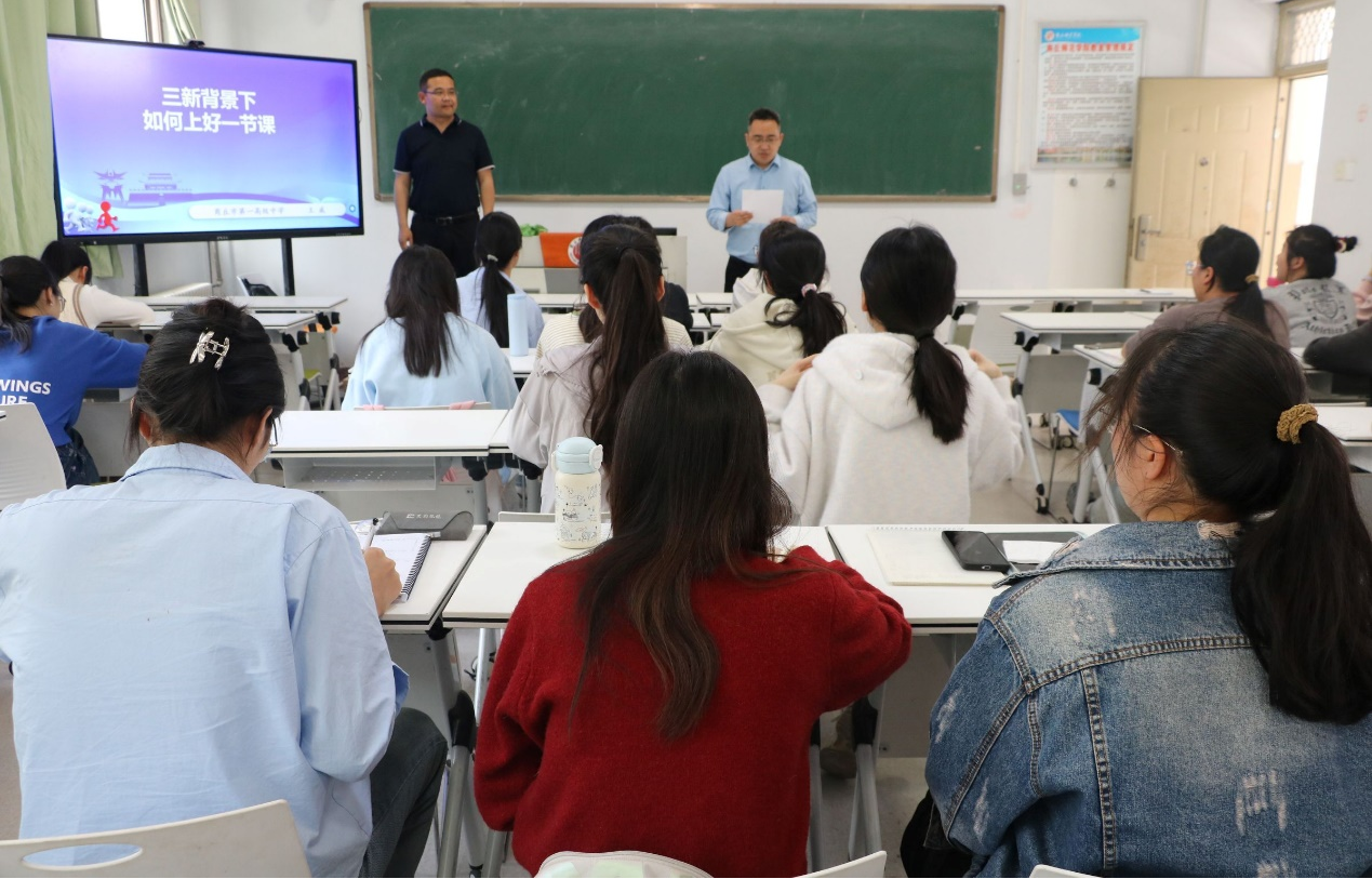为助力教师深入理解“三新”背景下的教学要求,提升课堂教学实效。2025年4月21日下午两点半在睢阳校区一号教学楼210教室开展了“三新背景下如何上好一节课”专题讲座。本次讲座由英国上市365公司副经理任磊主持,商丘第一高级中学教师王威讲授,数学与应用数学系主任司红颖及全体工作坊坊员参加。