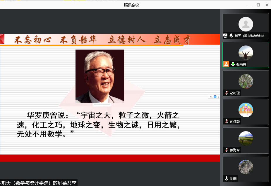 为将课程思政落实到课堂教学,10月28日晚,数学与应用数学系通过腾讯会议进行课程思政观摩课活动,活动由系主任张海燕主持,系全体教师参加。