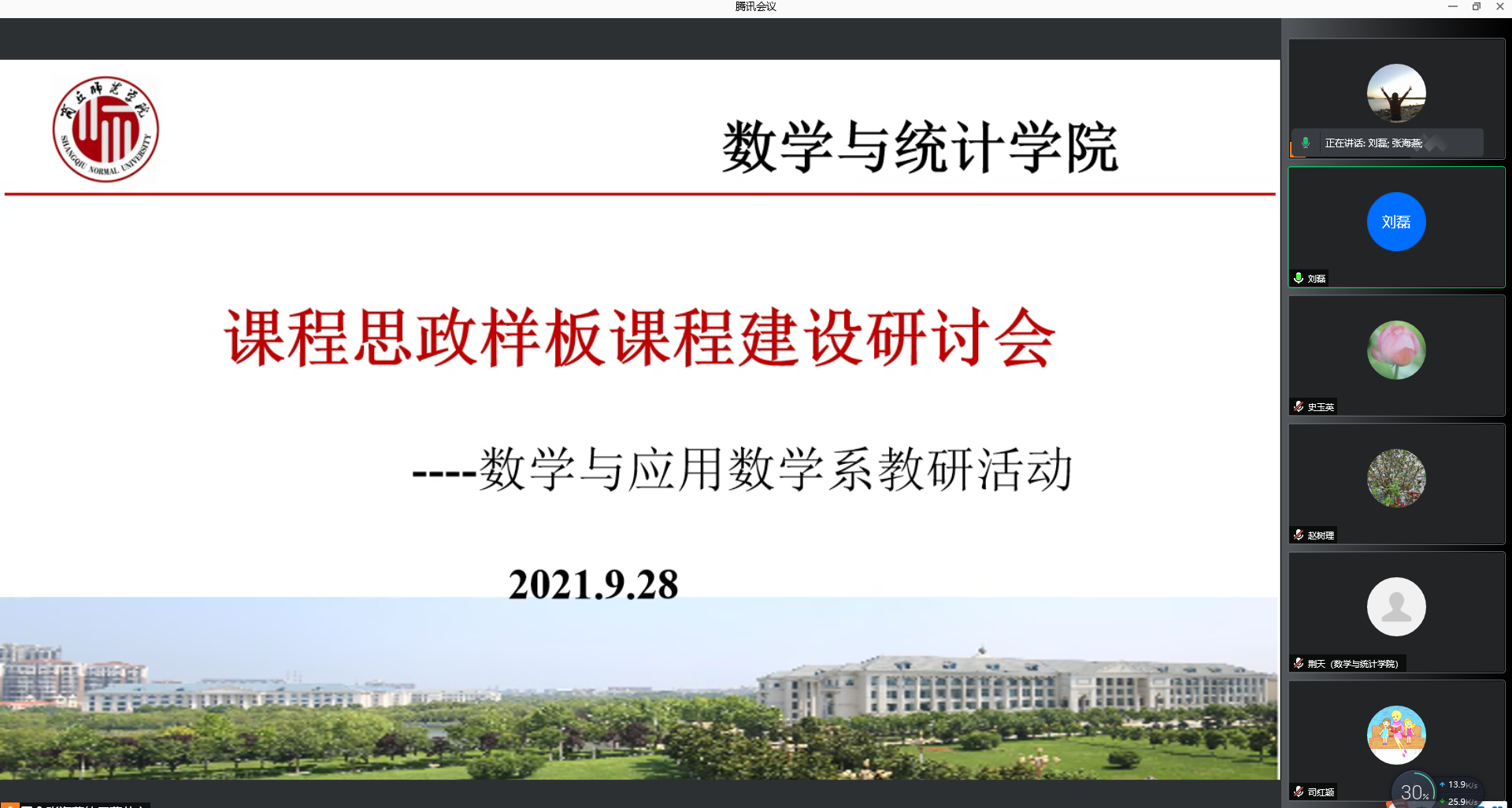 9月28日晚,英国上市365数学与应用数学系通过腾讯会议召开了本学期第二次教学研讨会,此次会议的主题为课程思政样板课程建设,会议由系主任张海燕主持,系全体教师参加会议。